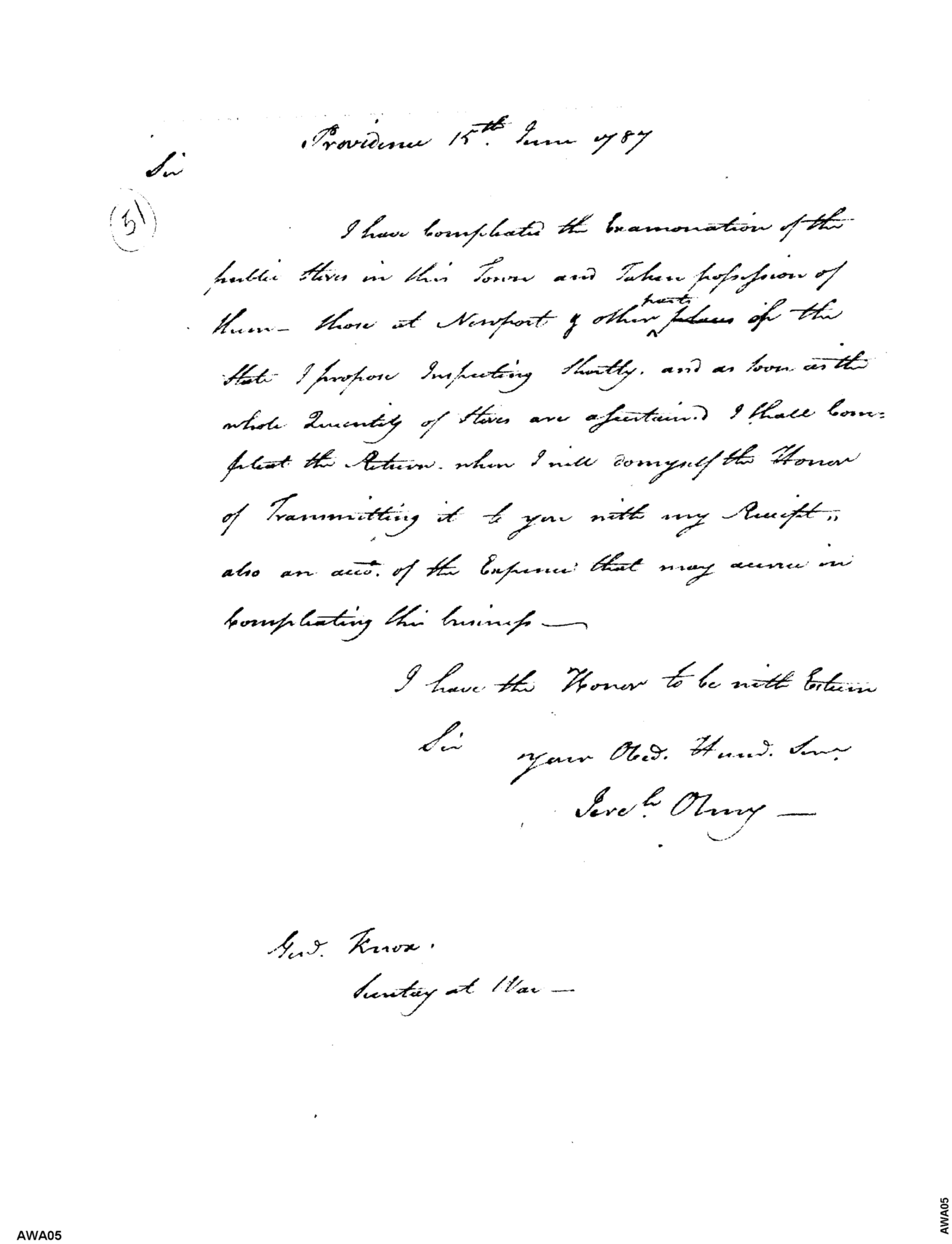 - Document: Regarding Examination of Military Stores in Rhode Island