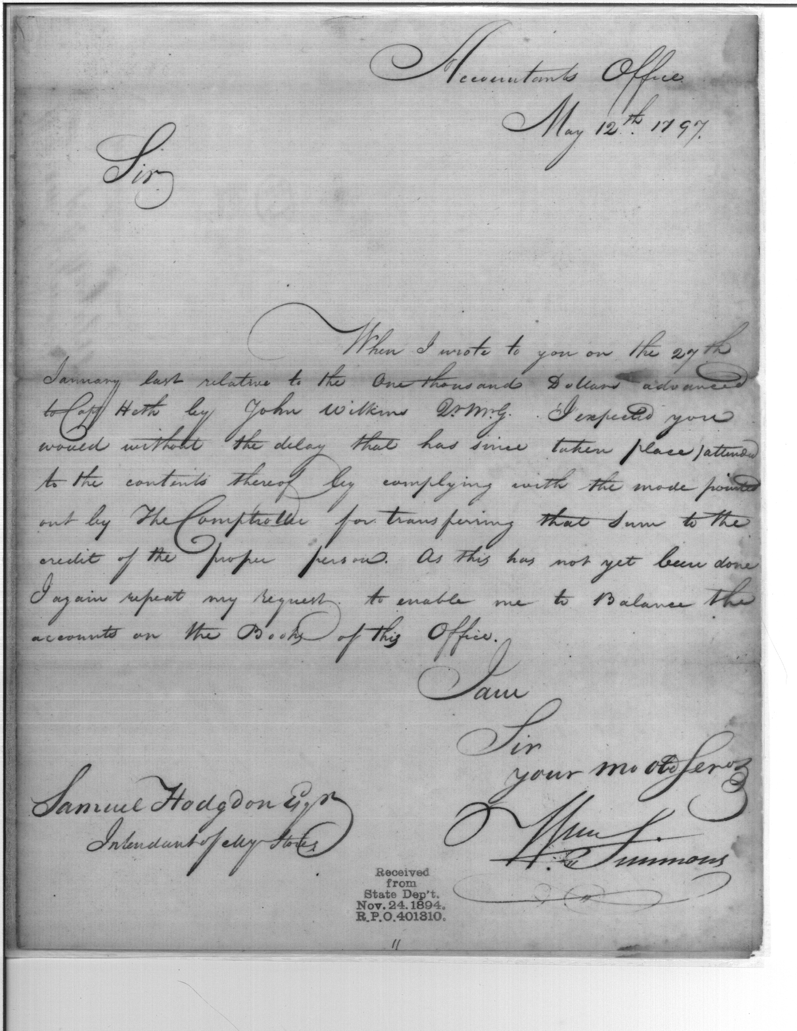 - Document: Transfer $1000 to the Proper Person