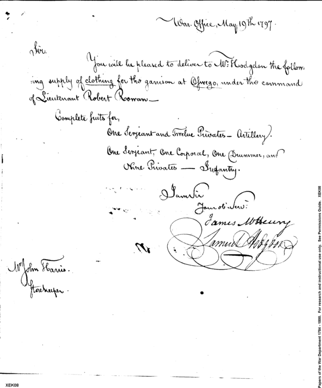 - In source: Collection: Correspondence, Reports, Returns, Bills, Accounts Current' Statements, Receipts, Vouchers and Contracts of Philadelphia Supply Agencies (Coxe and Irvine Papers), 1794-1842. (RG92)