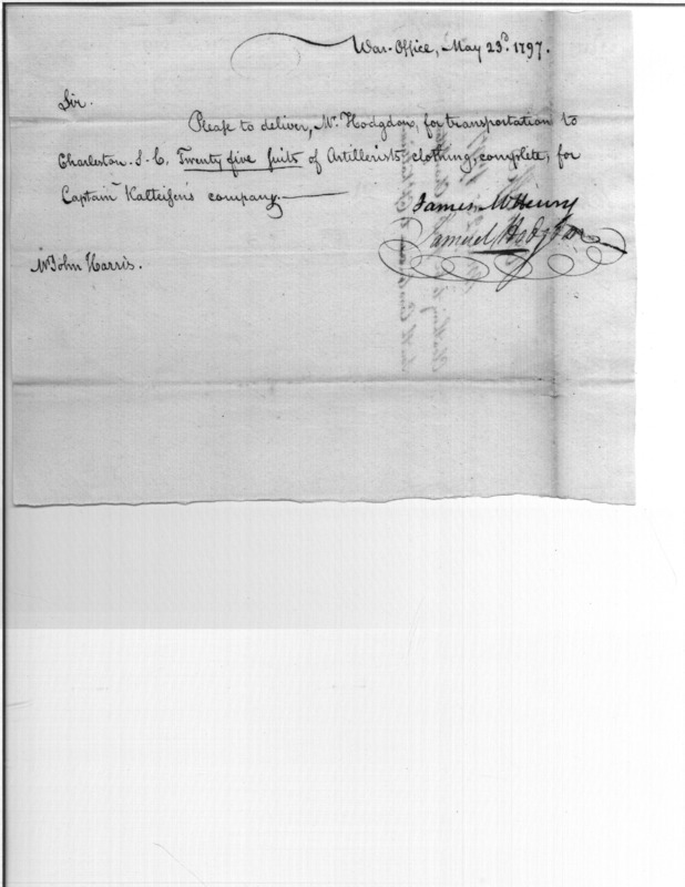- In source: Collection: Correspondence, Reports, Returns, Bills, Accounts Current' Statements, Receipts, Vouchers and Contracts of Philadelphia Supply Agencies (Coxe and Irvine Papers), 1794-1842. (RG92)