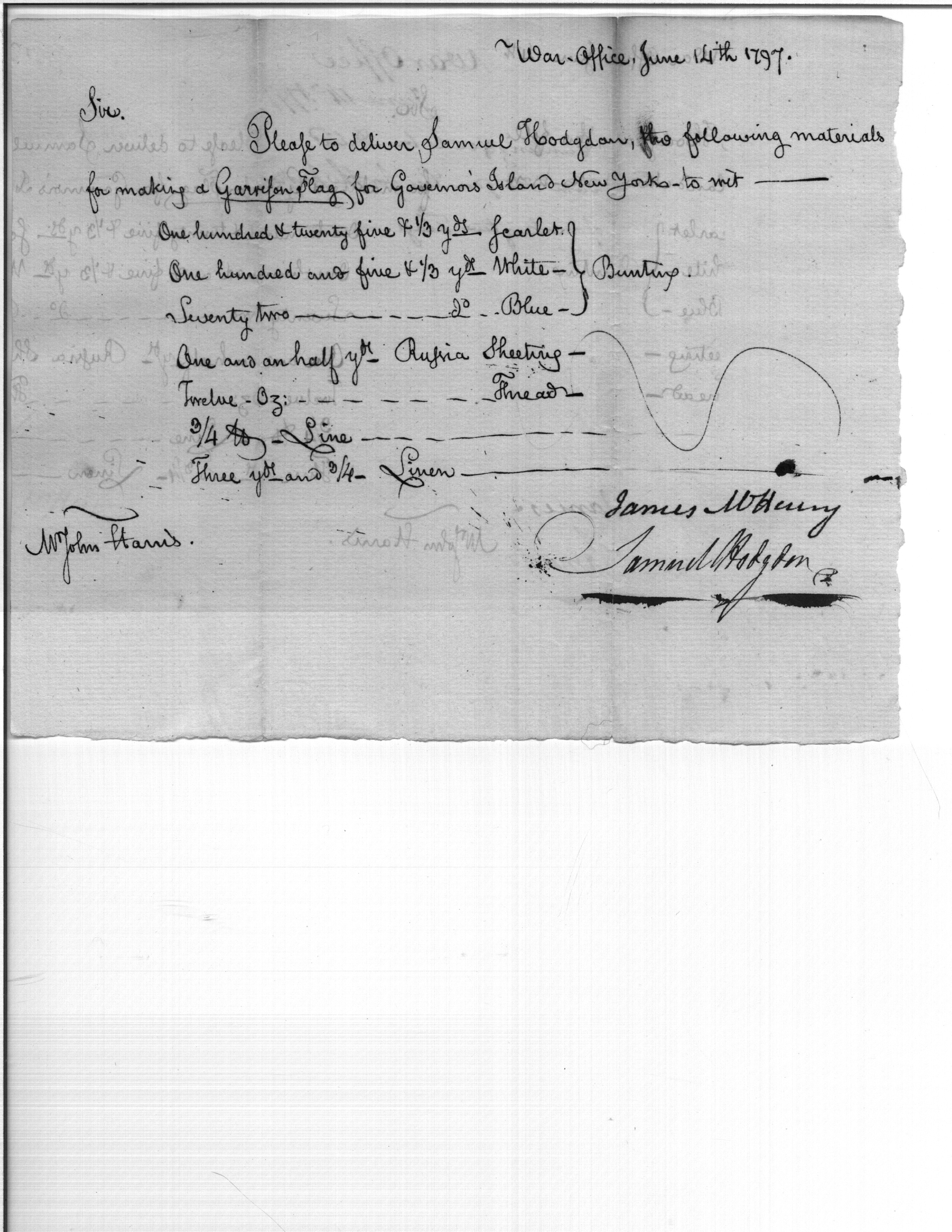 - Document: Delivery of Material for Garrison Flag