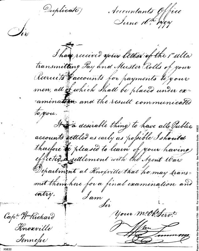 - In source: Collection: Post Revolutionary War Papers, 1784-1815. (RG94)