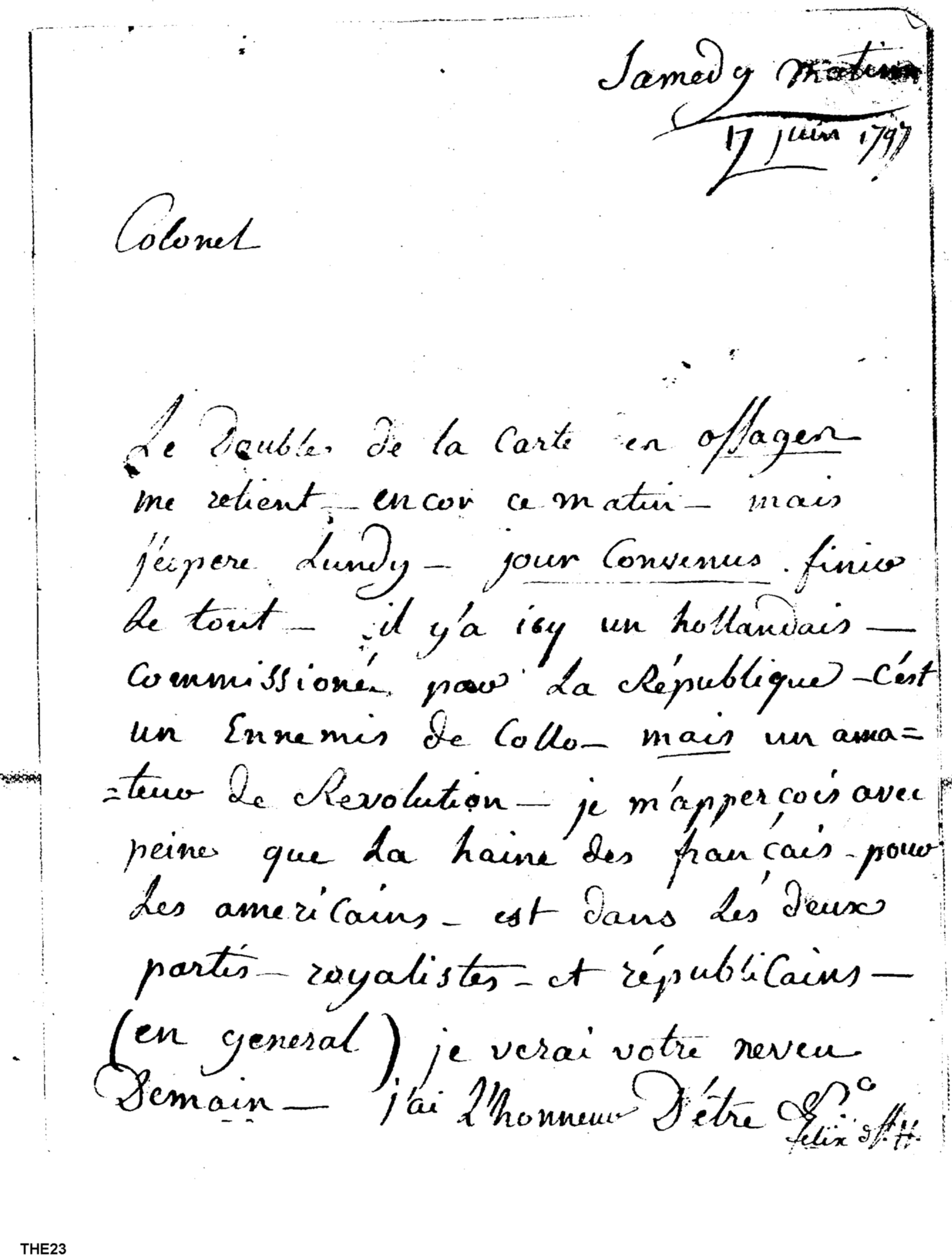 Letter to Secretary at War