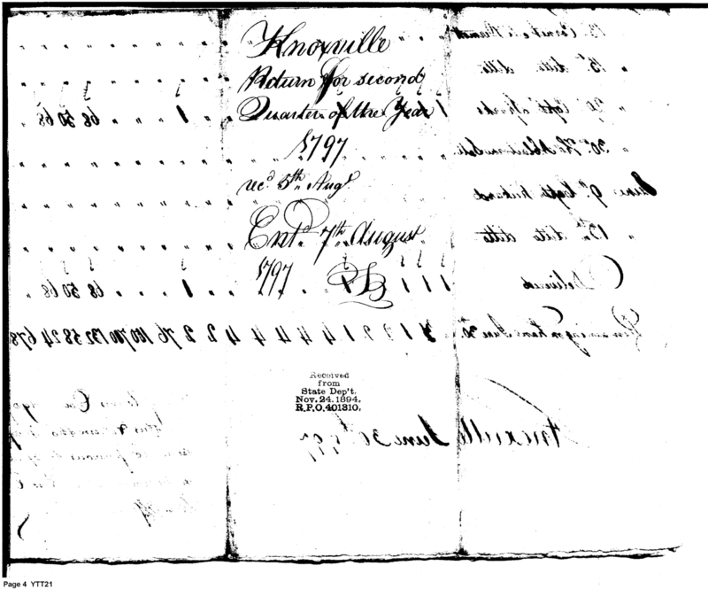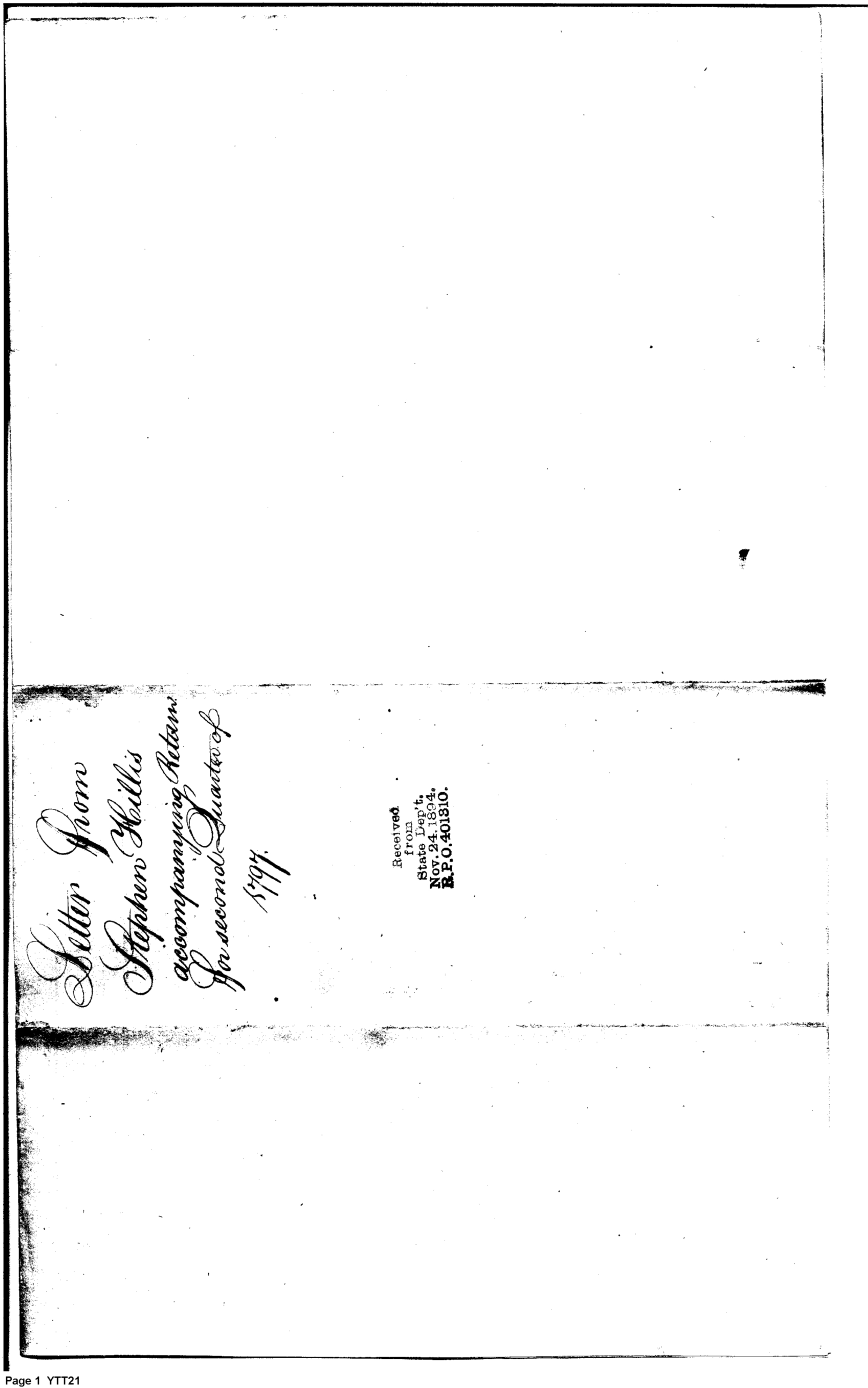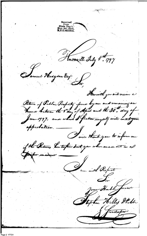 Document ViewerLetter from Stephen Hillis accompanying return for second quarter of 1797