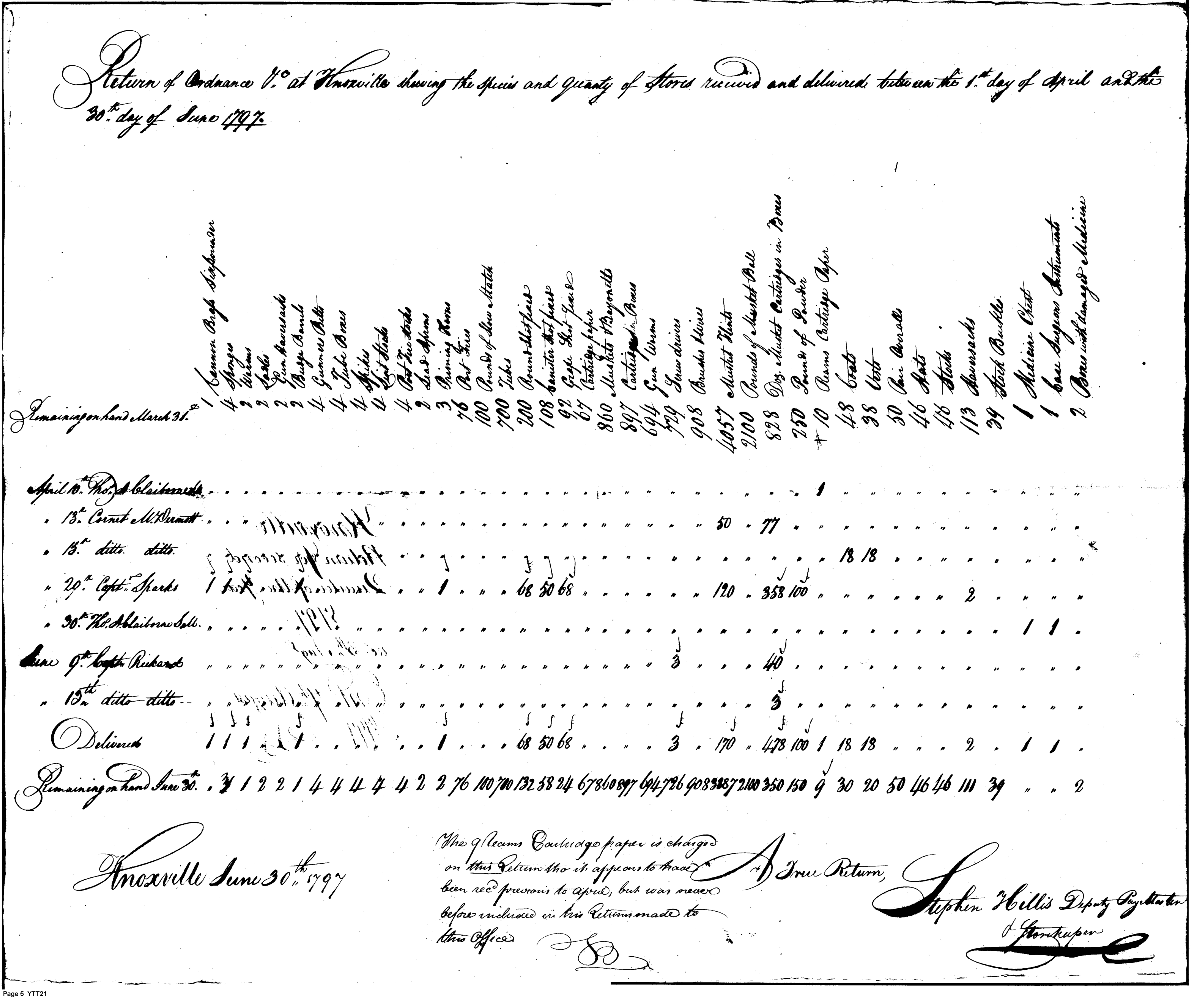 - Document: Letter from Stephen Hillis accompanying return for second quarter of 1797