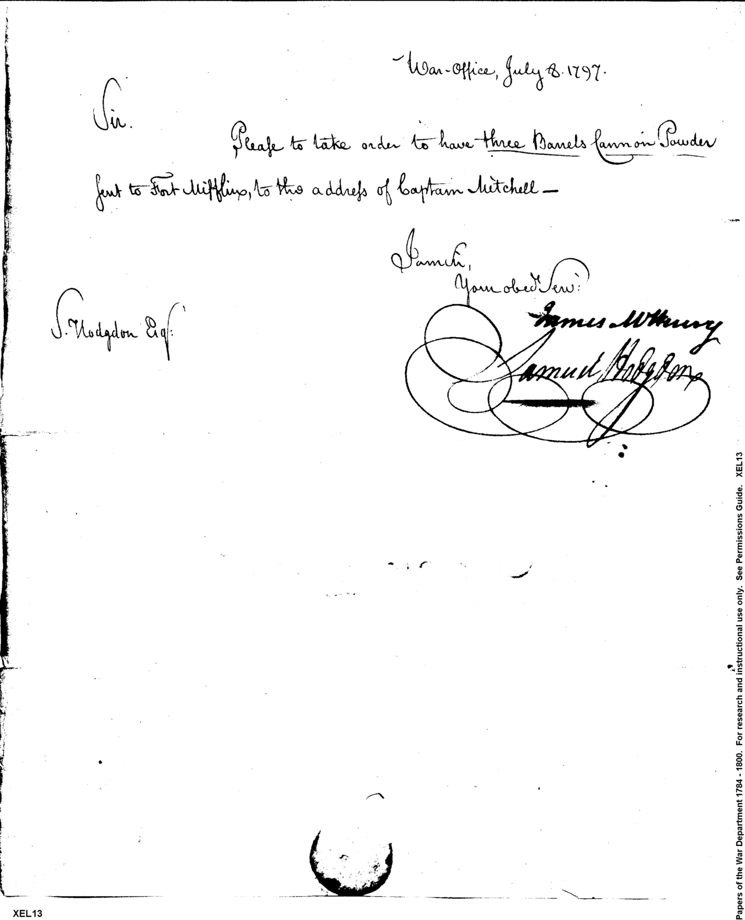 - Document: Delivery of Cannon Powder to Fort Mifflin
