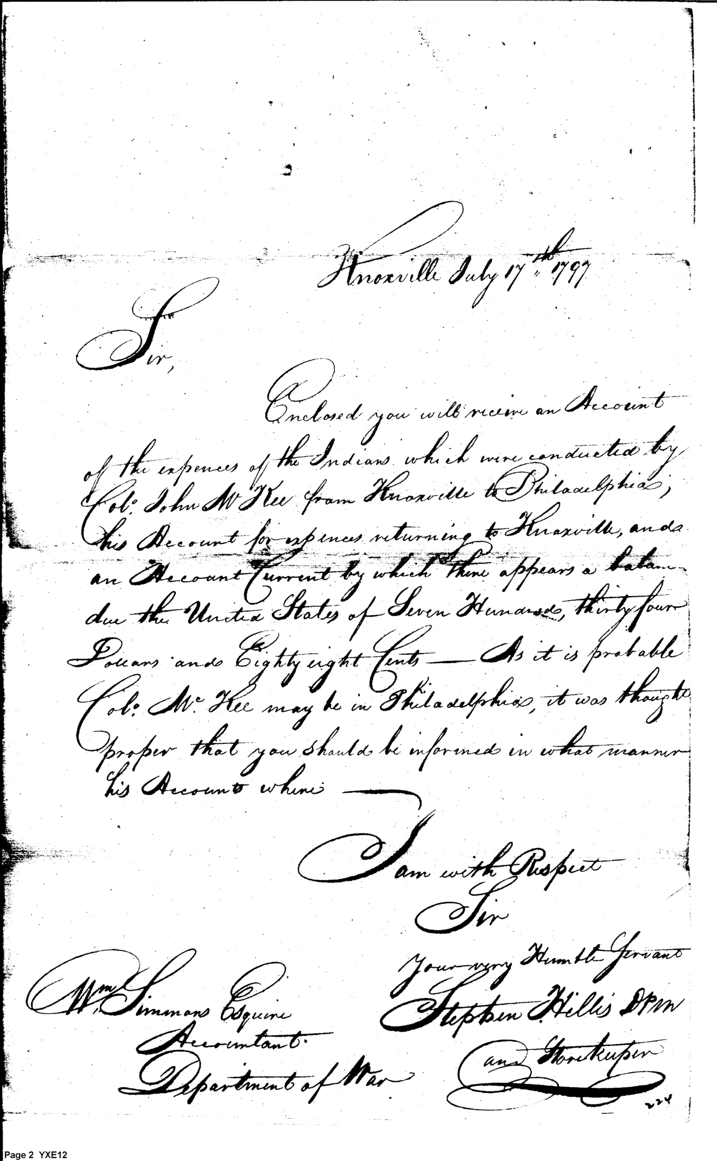 - Document: Enclosed Accounts of the Expenses of the Indians Conducted by Col. J McRee