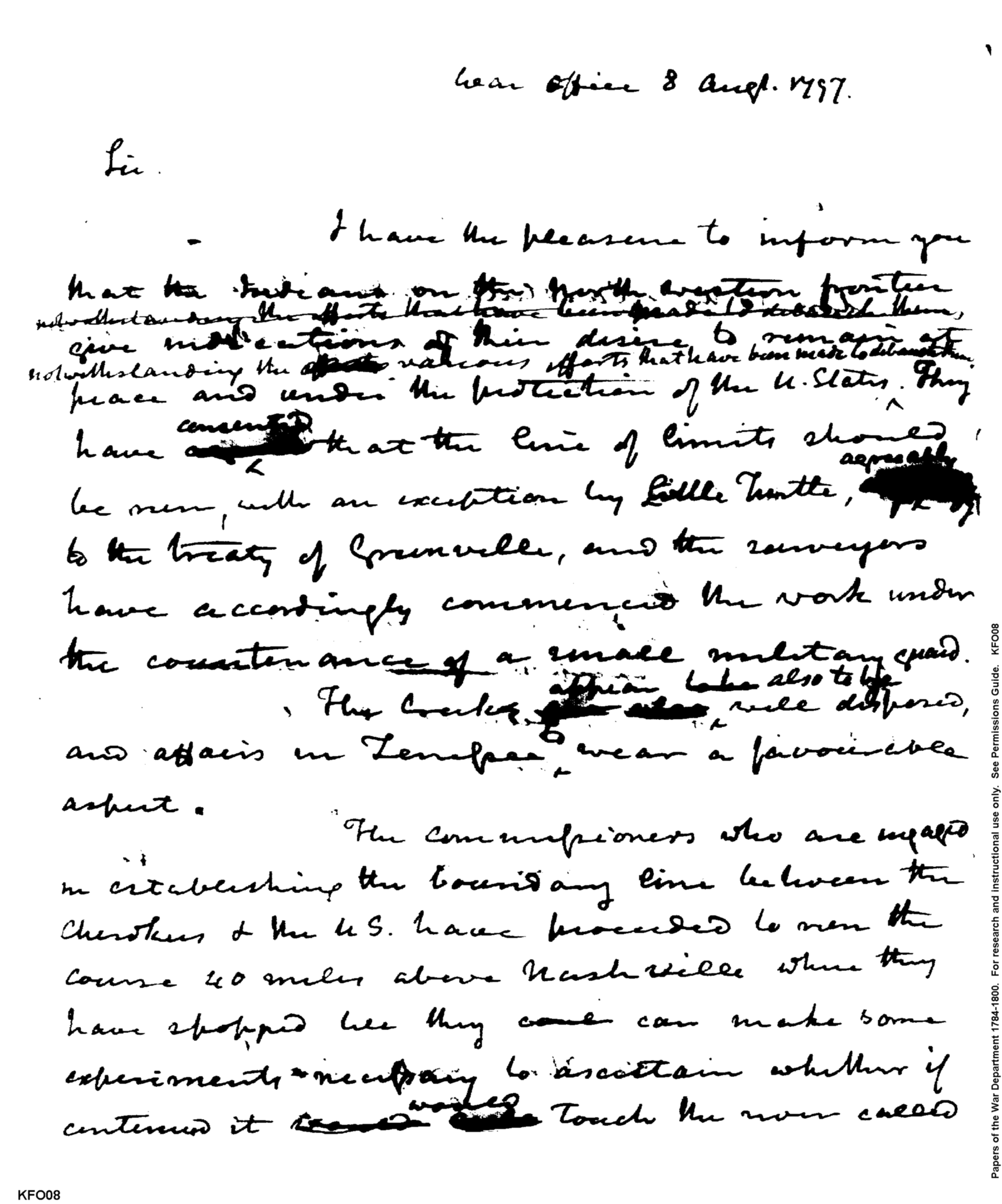 - Document: Status of Northwest Indians, U.S.-Cherokee Boundary Project, & Frontier Military Movements