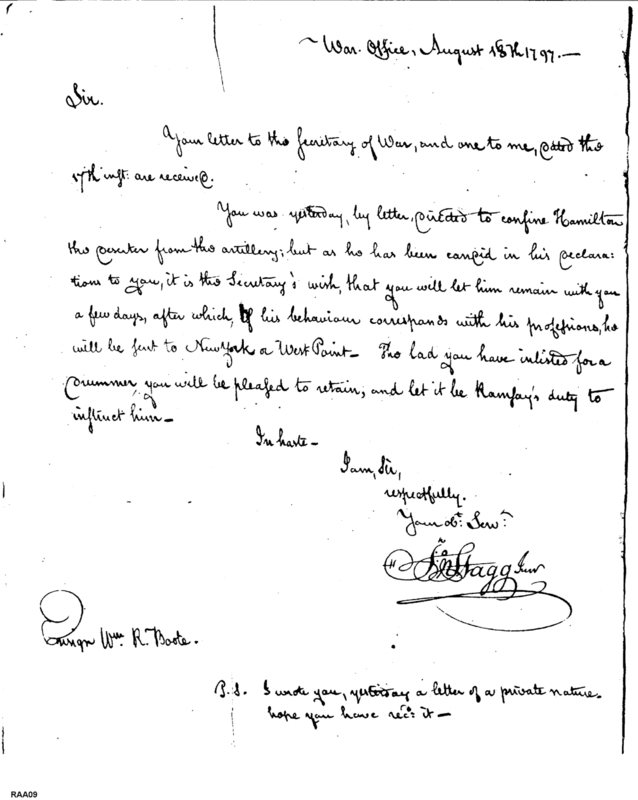 - Document: Letter to the Secretary at War received