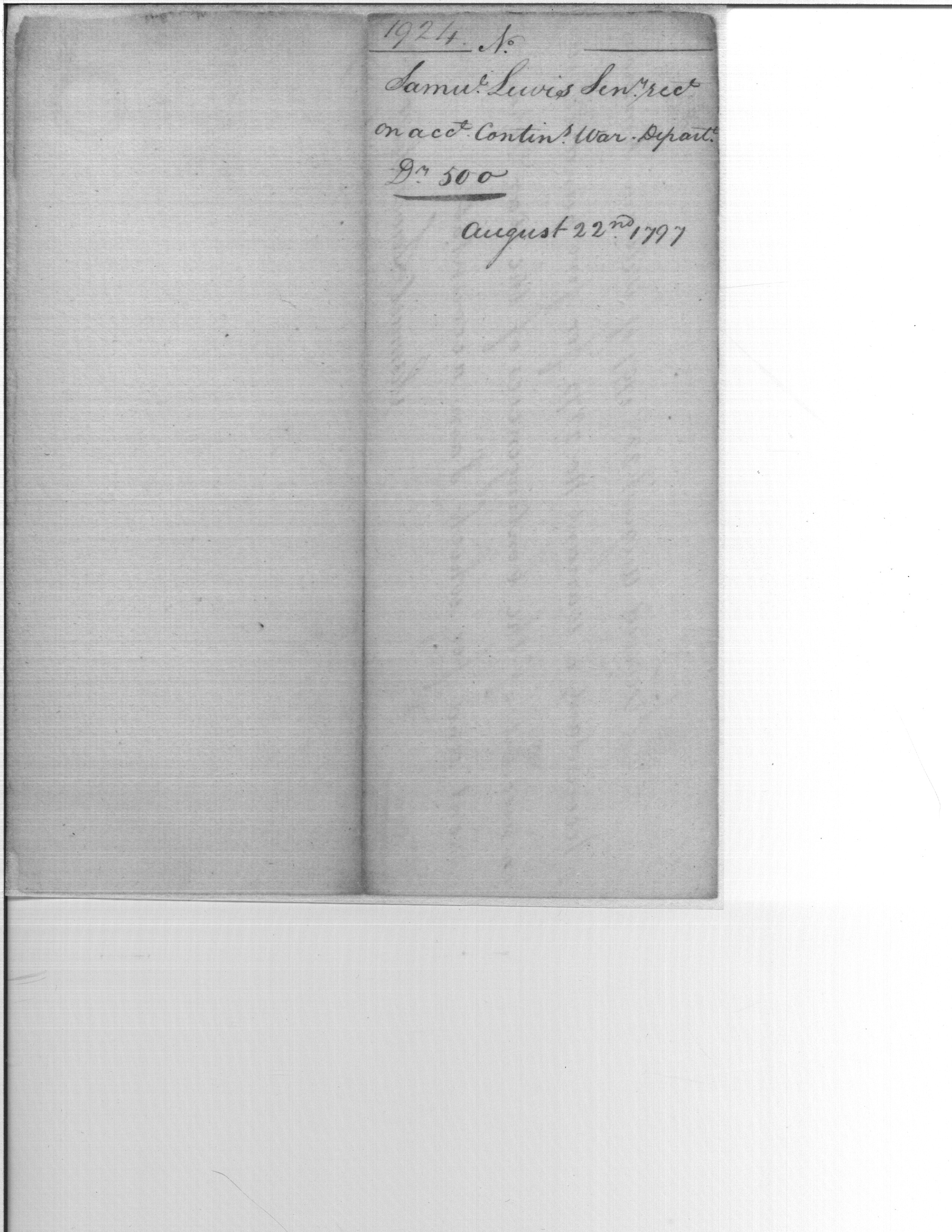 - Document: Receipt of Samuel Lewis on account of contingencies War Department