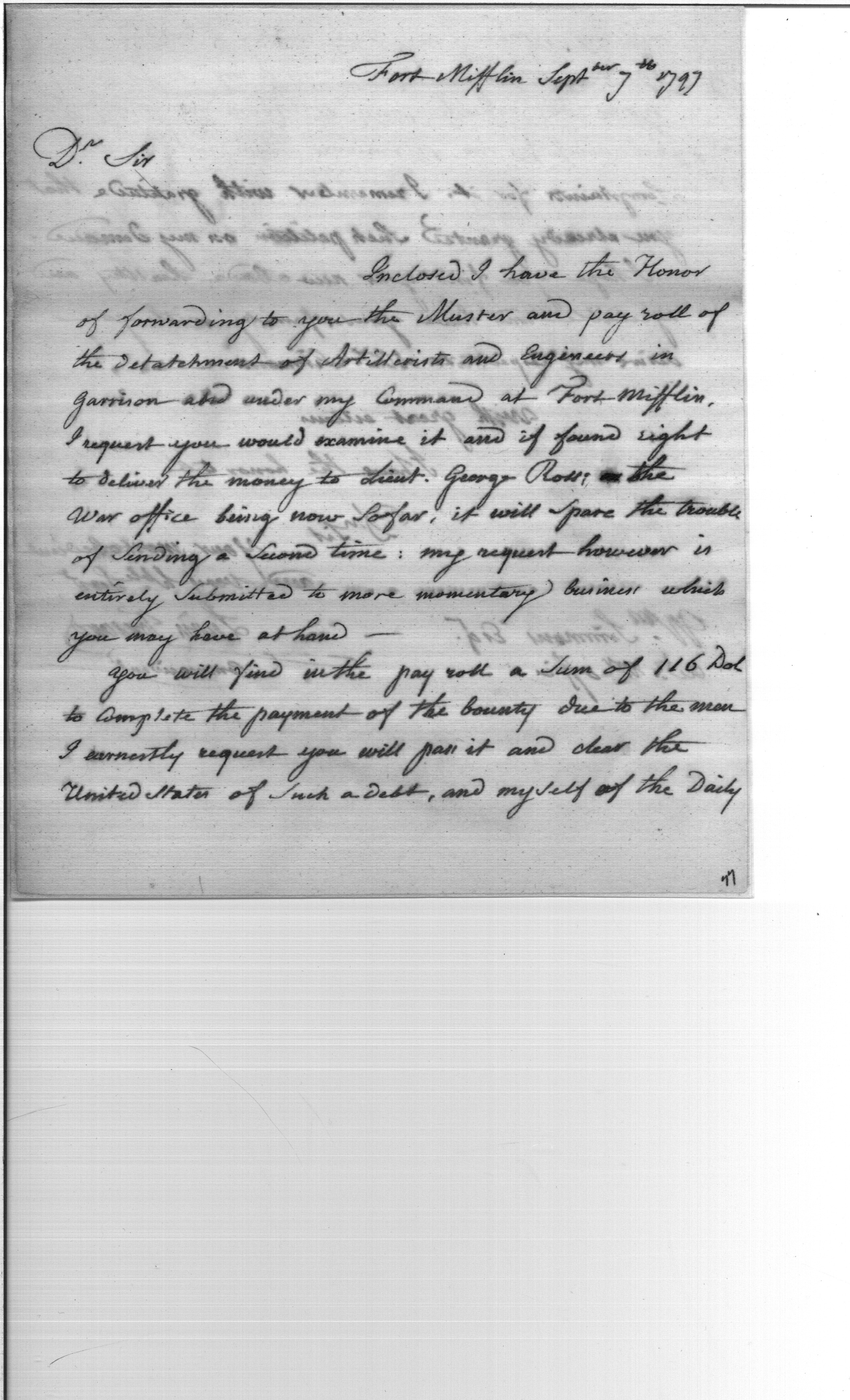 - Document: Enclosed Receipts, Request for Pay via Lieut. George Ross