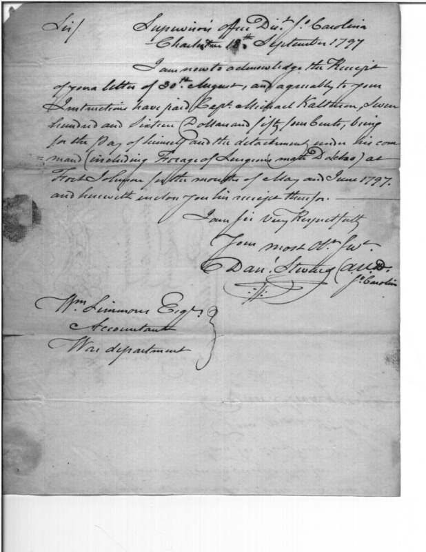 - Document: Report of payments to Kaltheisen's detachment at Fort Johnson