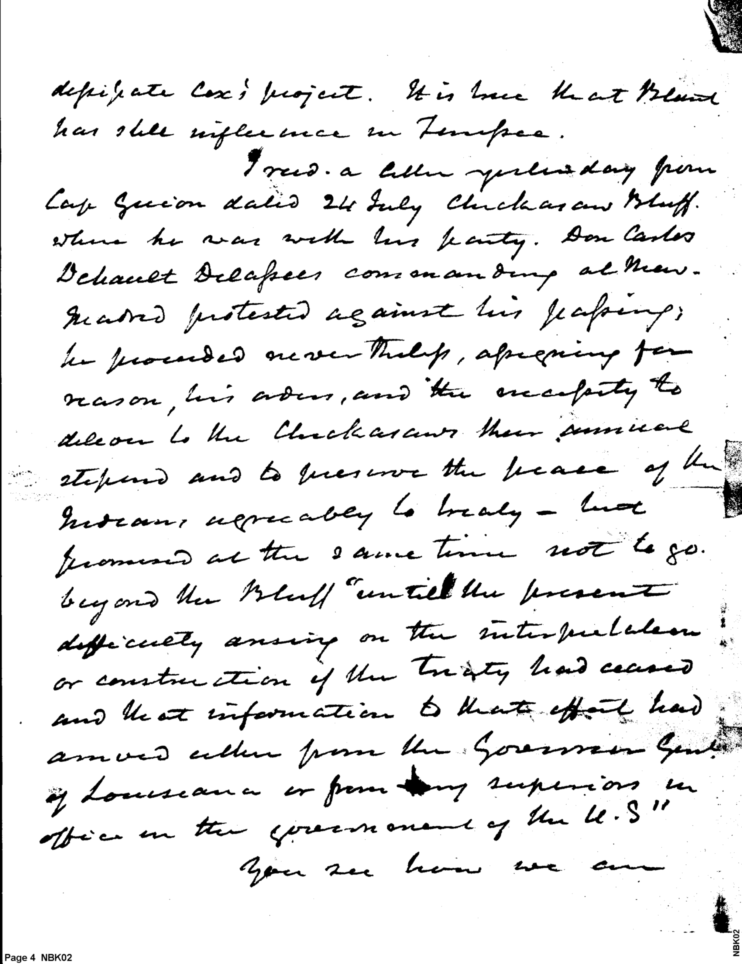 - Document: Diplomatic relations with Chickasaws and Spanish on the western frontier