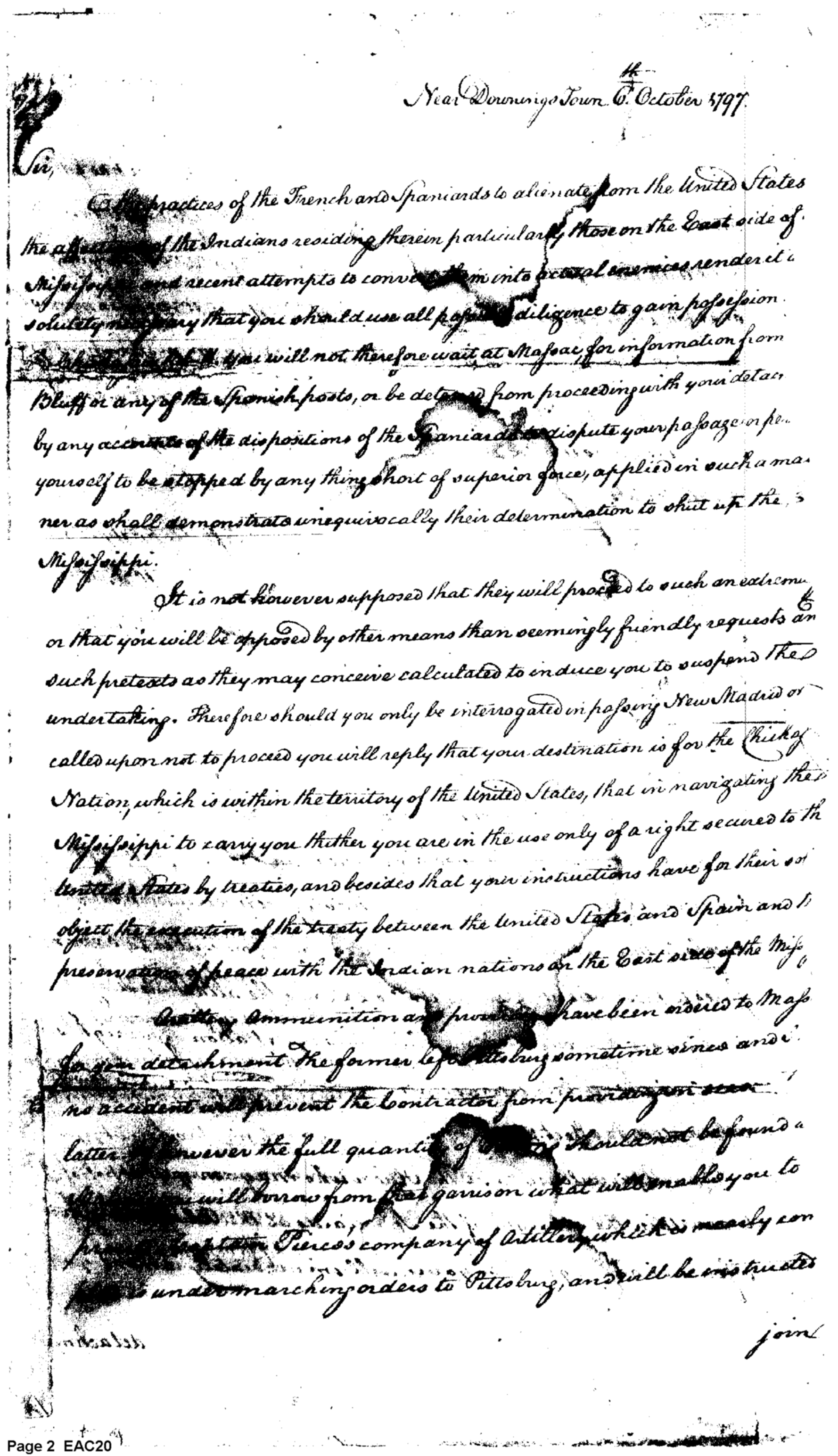 - Document: Standing orders issued to the Commander of troops at Massac