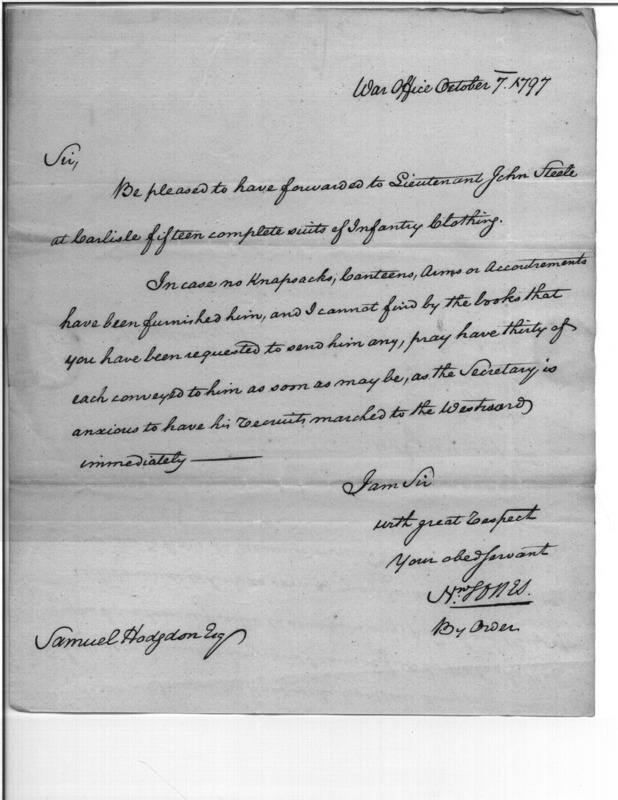 - In source: Collection: Correspondence, Reports, Returns, Bills, Accounts Current' Statements, Receipts, Vouchers and Contracts of Philadelphia Supply Agencies (Coxe and Irvine Papers), 1794-1842. (RG92)
