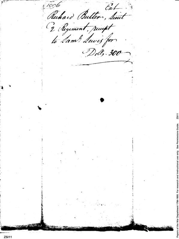 - Document: Receipt of Samuel Lewis to Richard Butler on account of the recruiting service