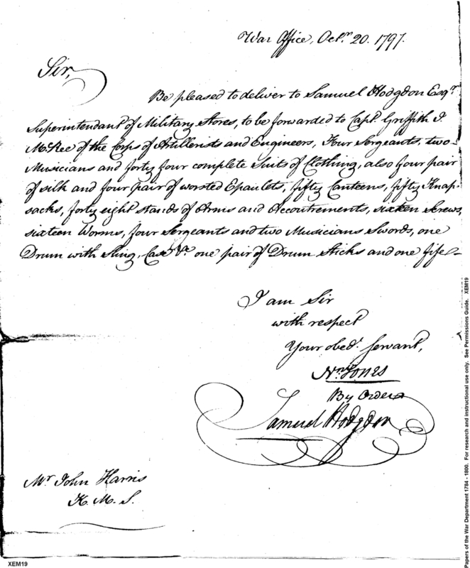 - Document: Delivery of Clothing and Supplies for Artillerists