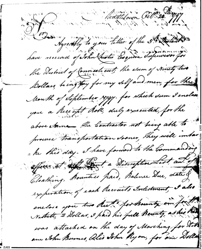 - In source: Collection: Post Revolutionary War Papers, 1784-1815. (RG94)