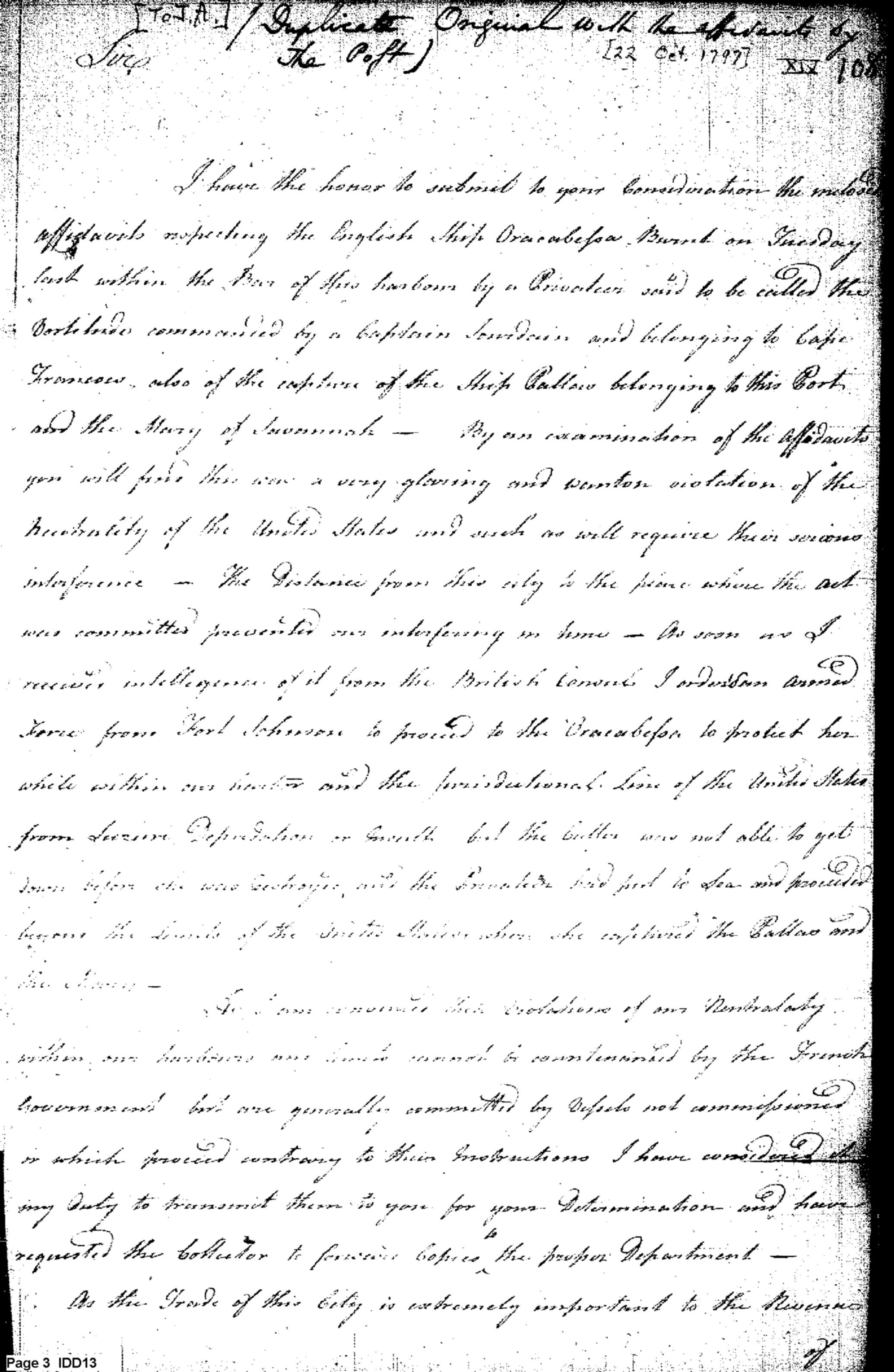Document ViewerForwarding of Affidavits Surrounding Burning of British Ship Oracabessa [Aracabessa] in U.S. Waters By French Privateer