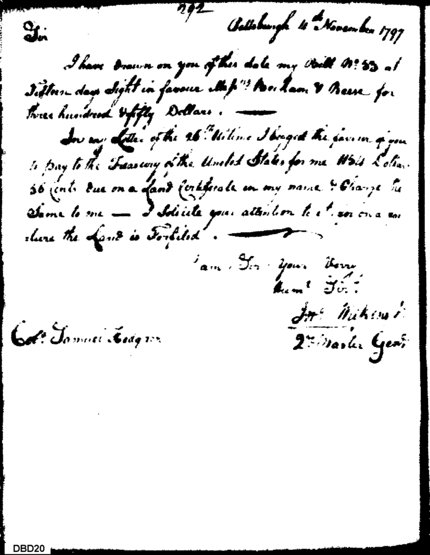 Document ViewerNotification of Recent Bill Drawn & Request for Paying of Fee Due on Wilkins' Land Certificate
