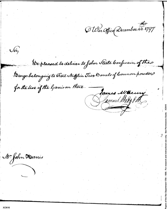- Document: Request for Delivery of Cannon Powder for Fort Mifflin