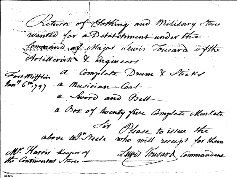 - In source: Collection: Correspondence, Reports, Returns, Bills, Accounts Current' Statements, Receipts, Vouchers and Contracts of Philadelphia Supply Agencies (Coxe and Irvine Papers), 1794-1842. (RG92)
