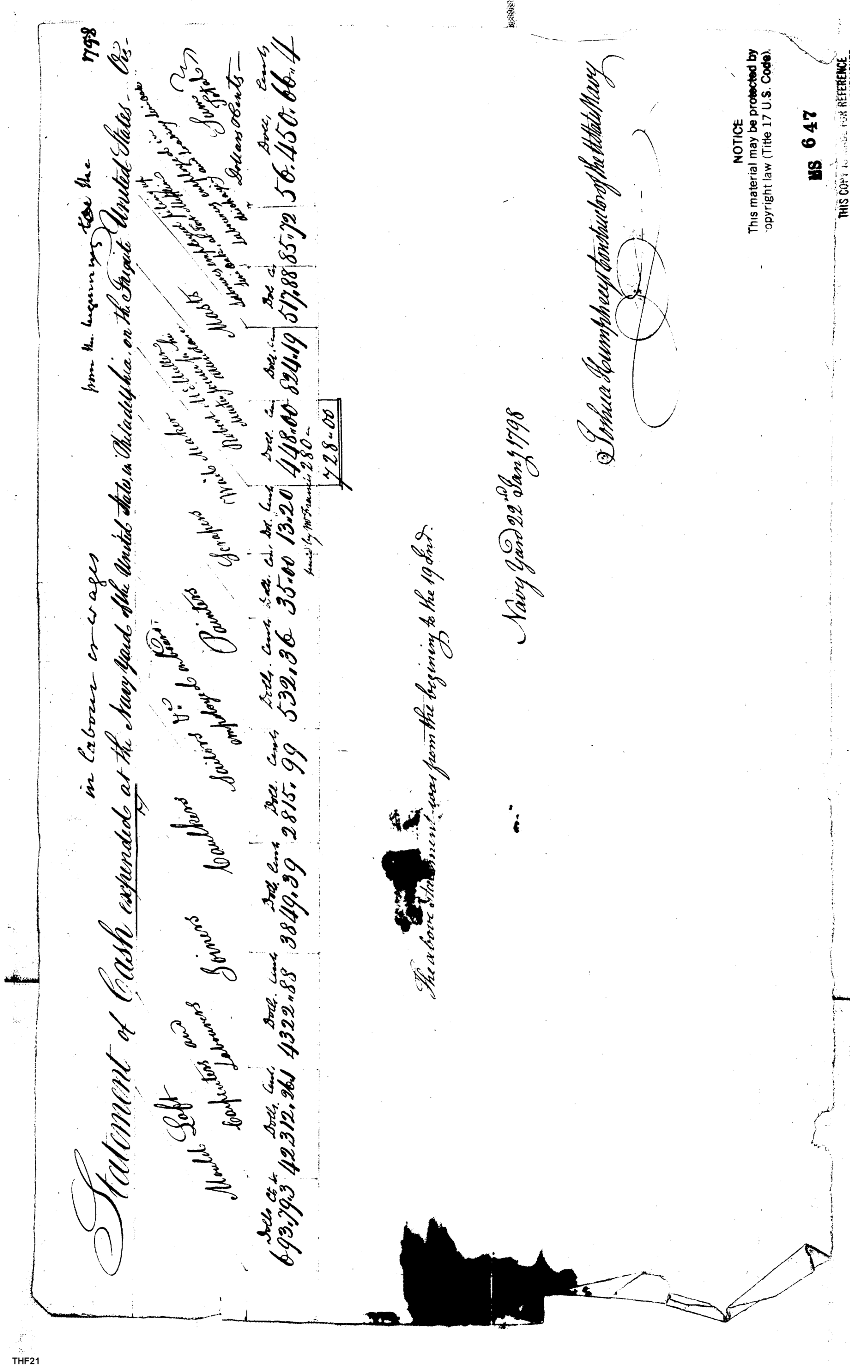 - Document: Statement of Cash Expended in labor & wages at the Navy Yard in Philadelphia