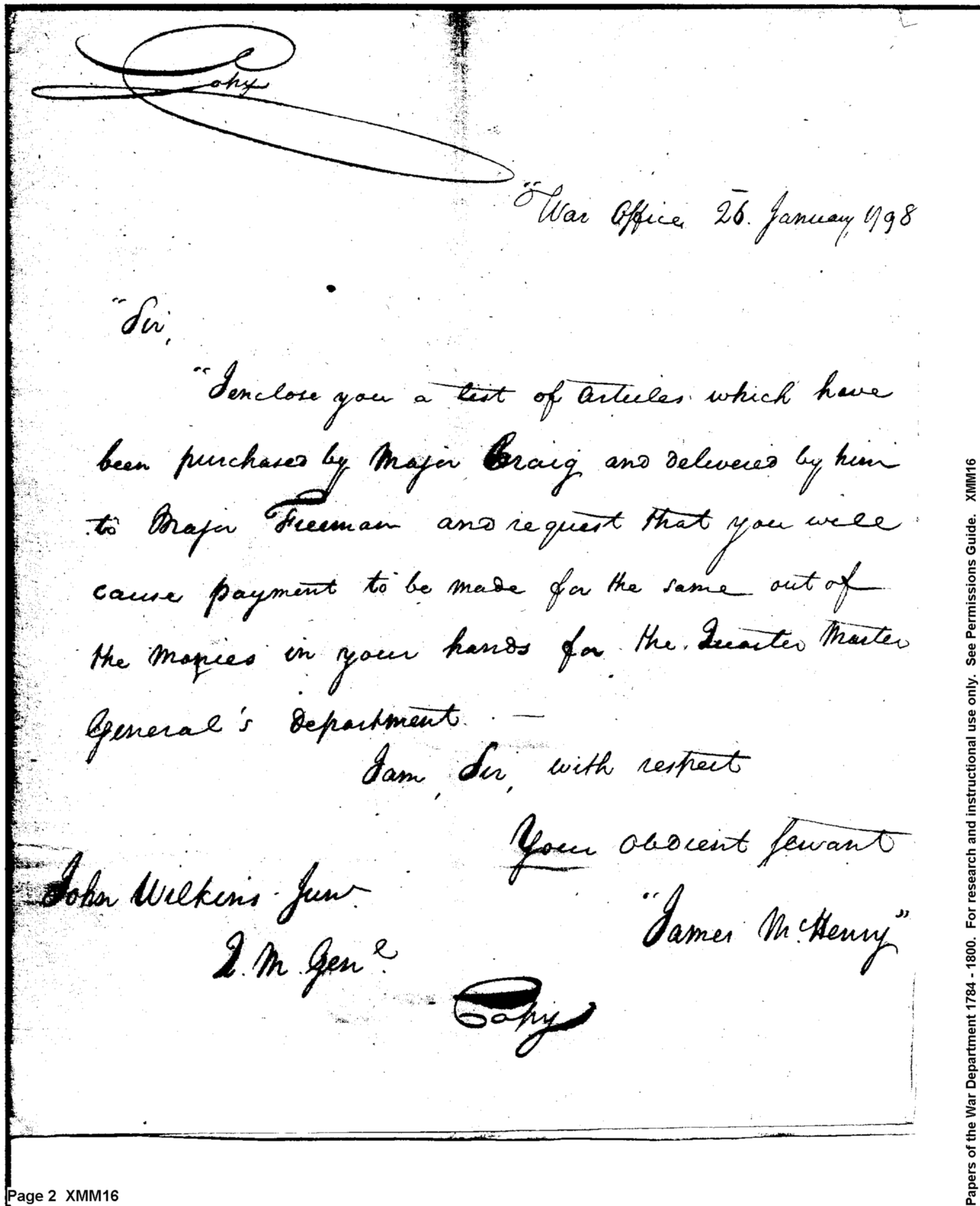 - Document: Request for payment for articles purchased by Major Craig