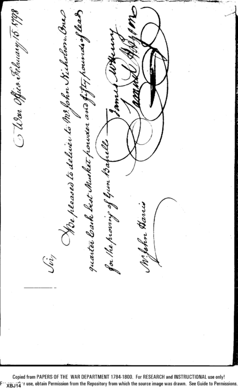 - Document: Request for Issue of Powder & Lead for Testing Gun Barrels