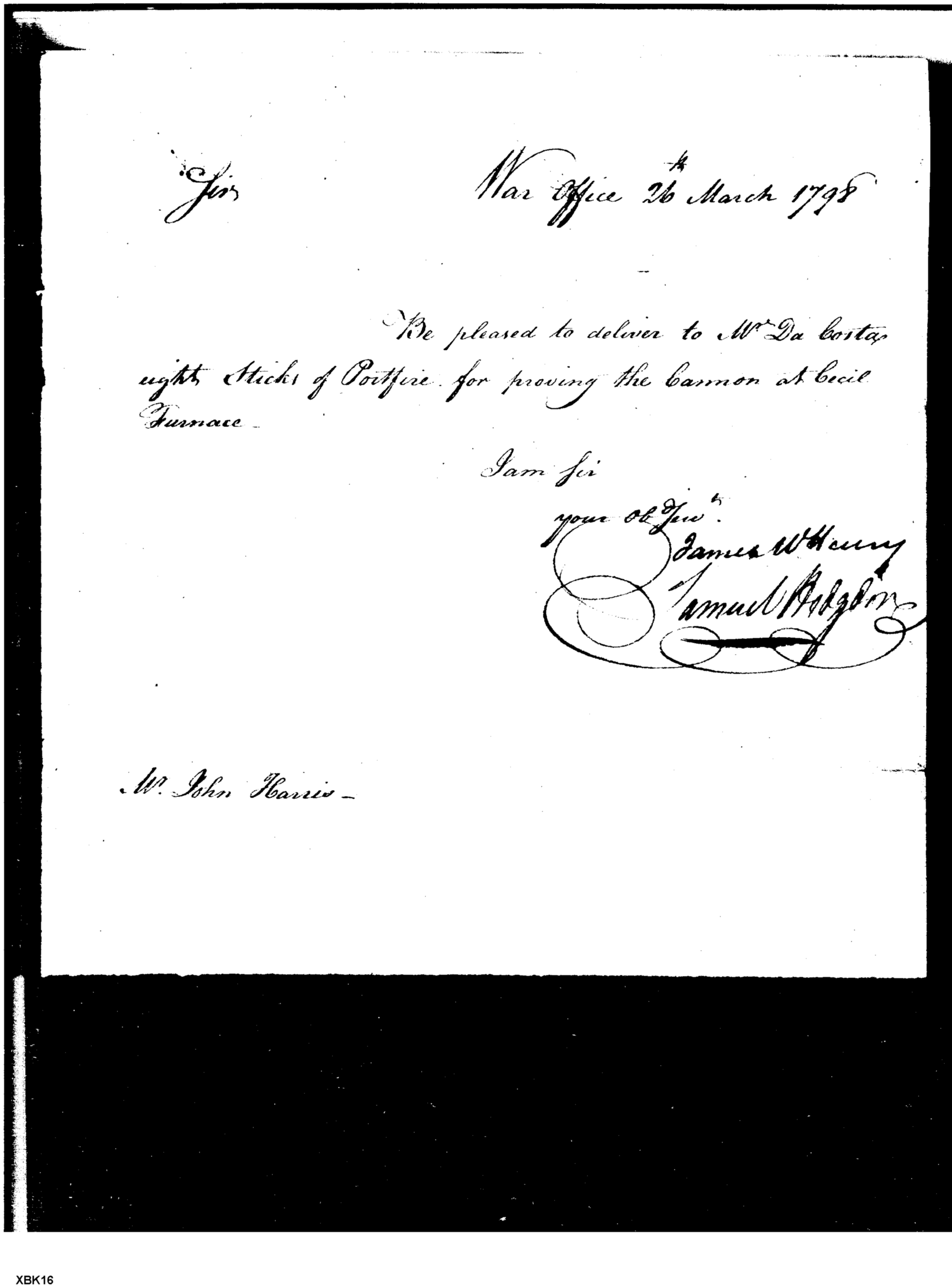 - Document: Request for Issue of Portfires for Use in Cannon Proving