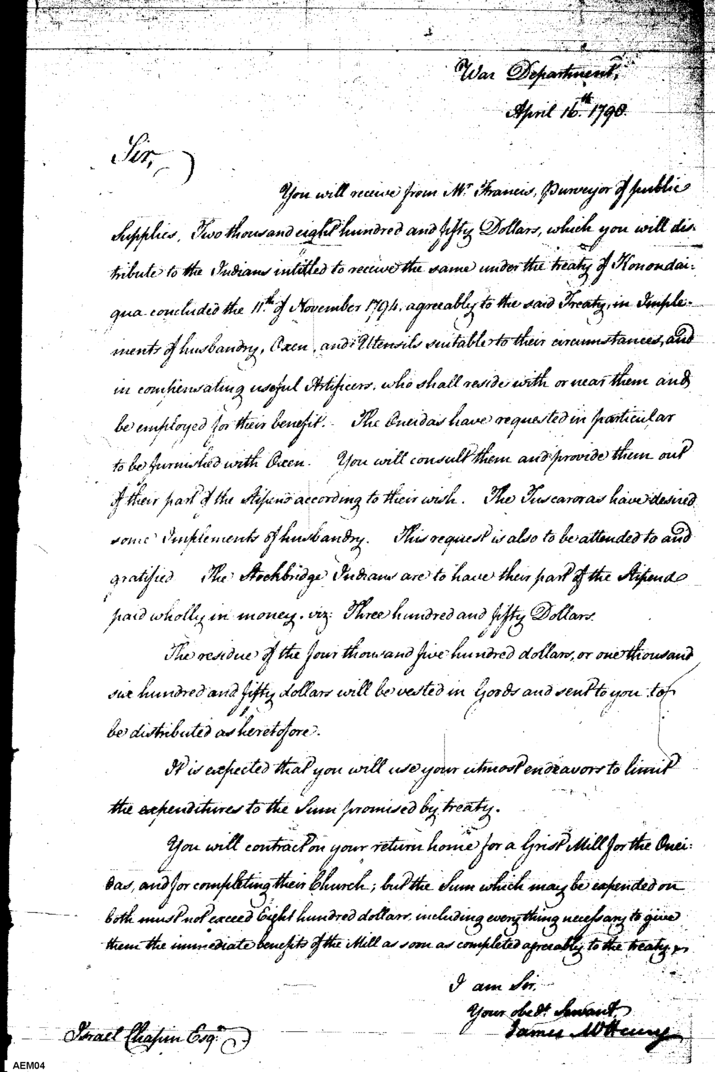Document ViewerSecretary at War directs the conduct of Indian affairs with Chapin