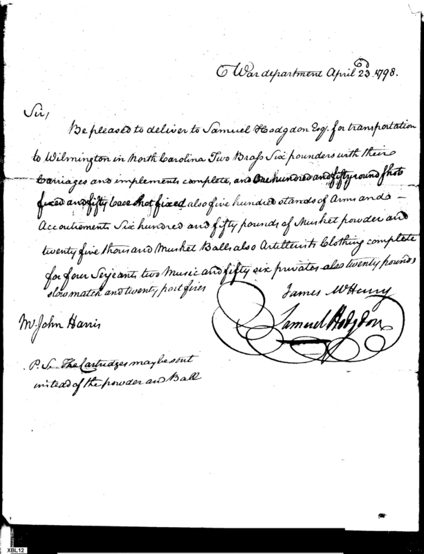 - Document: Request for Issue of Cannon & Muskets, With Supplies, and Clothing for Wilmington Troops