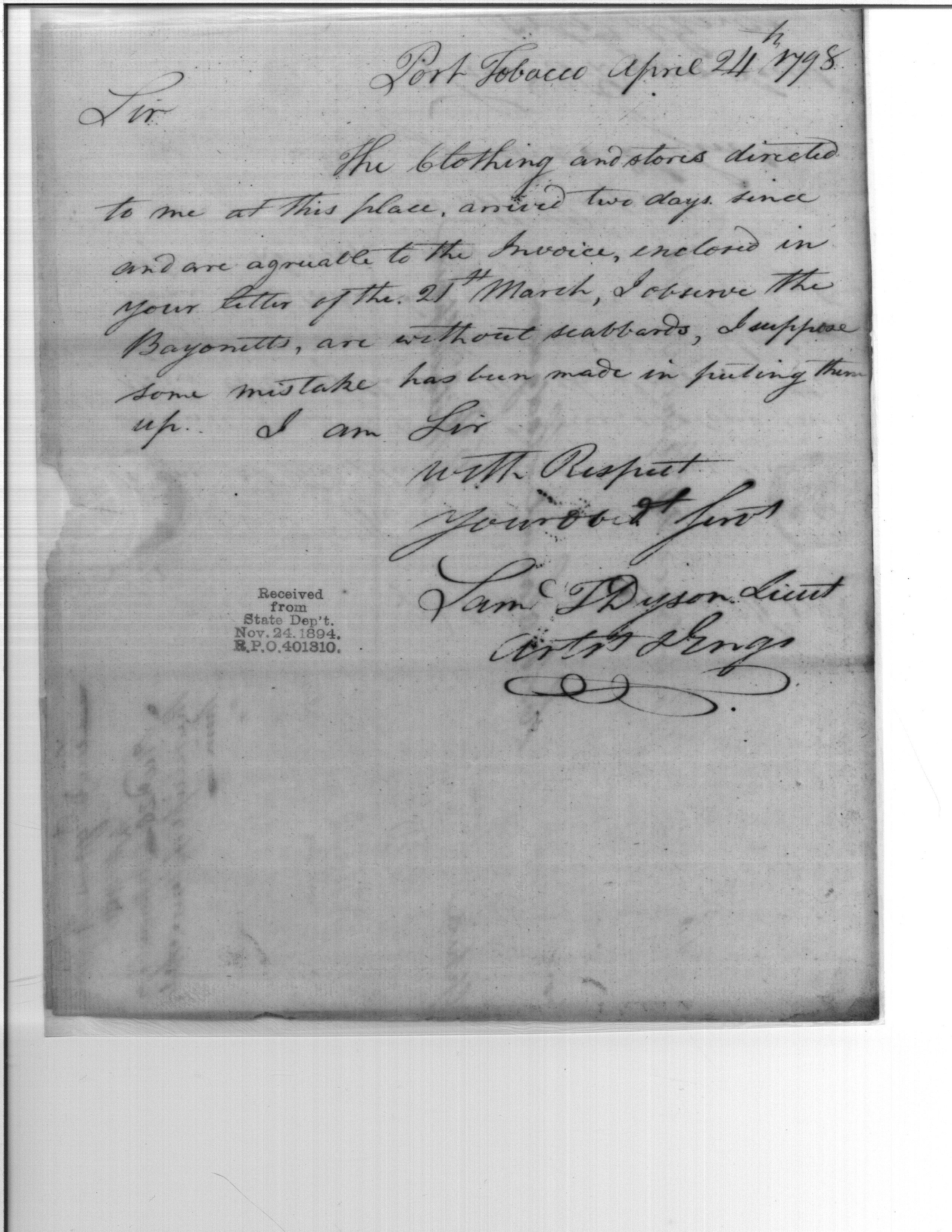 - In source: Collection: Post Revolutionary War Papers, 1784-1815. (RG94)