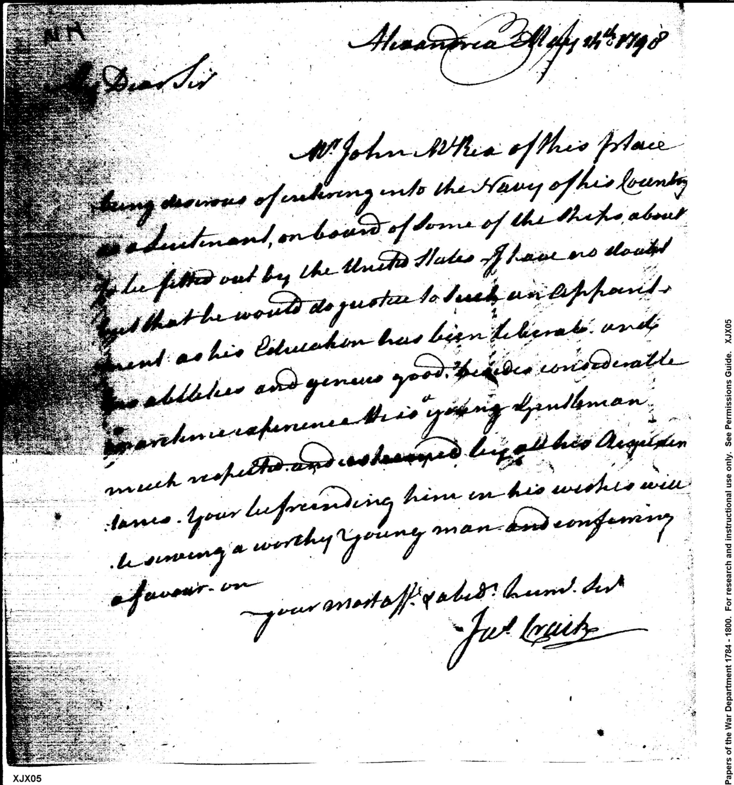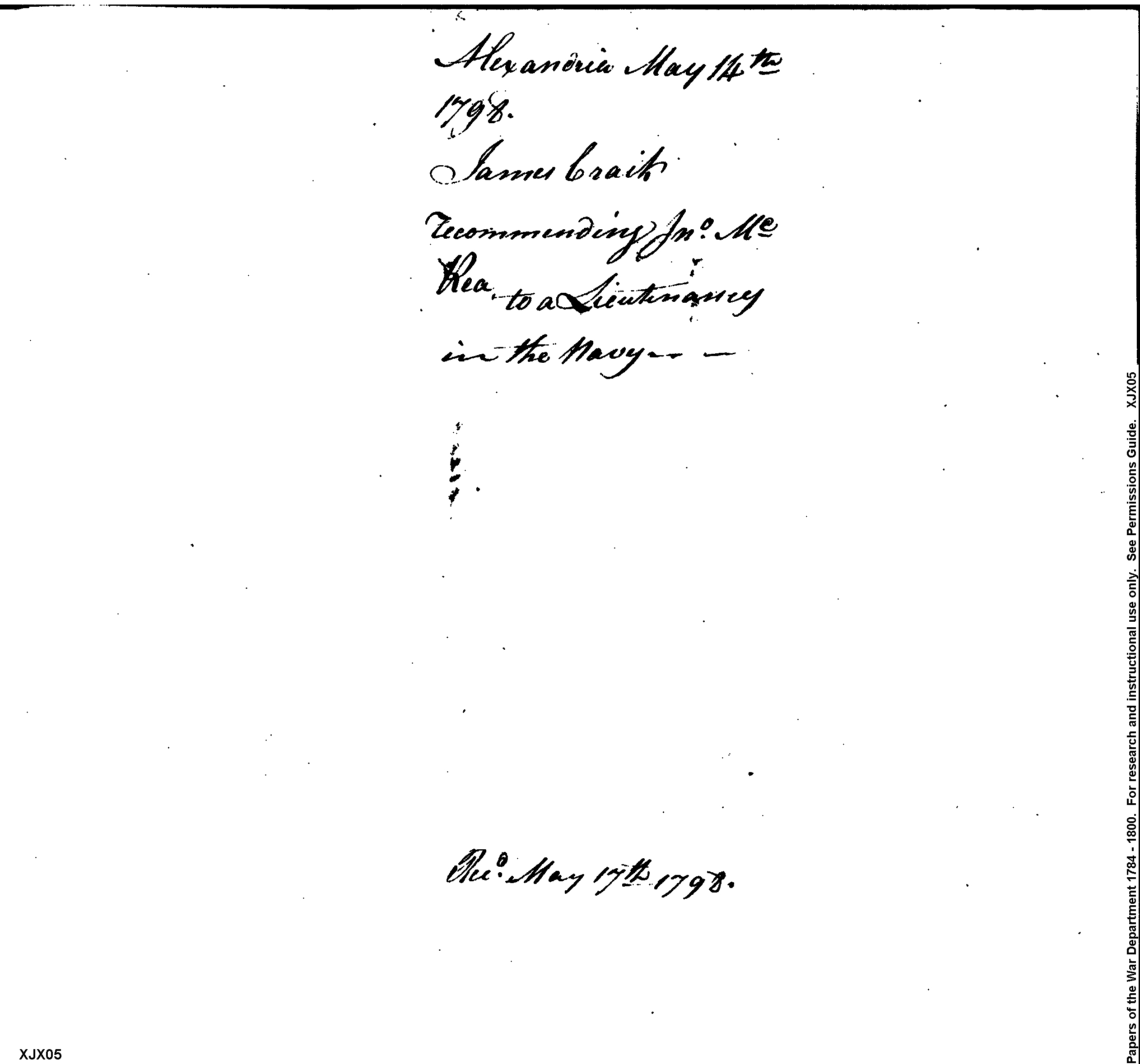 - Document: Recommending John McRea for a Lieutenancy in the Navy