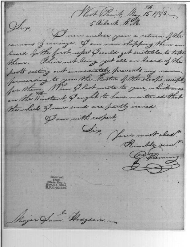 - In source: Collection: Post Revolutionary War Papers, 1784-1815. (RG94)