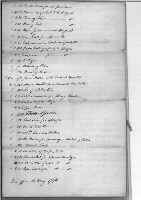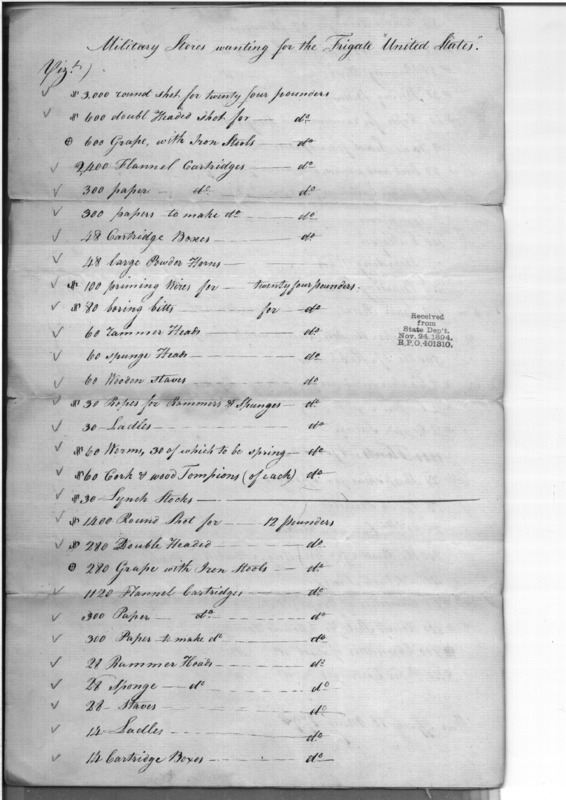 - Document: List of military stores wanting for the Frigate United States