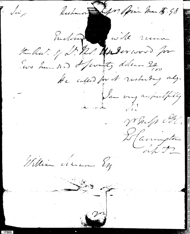 - Document: Receipt for Lieutenant Underwood