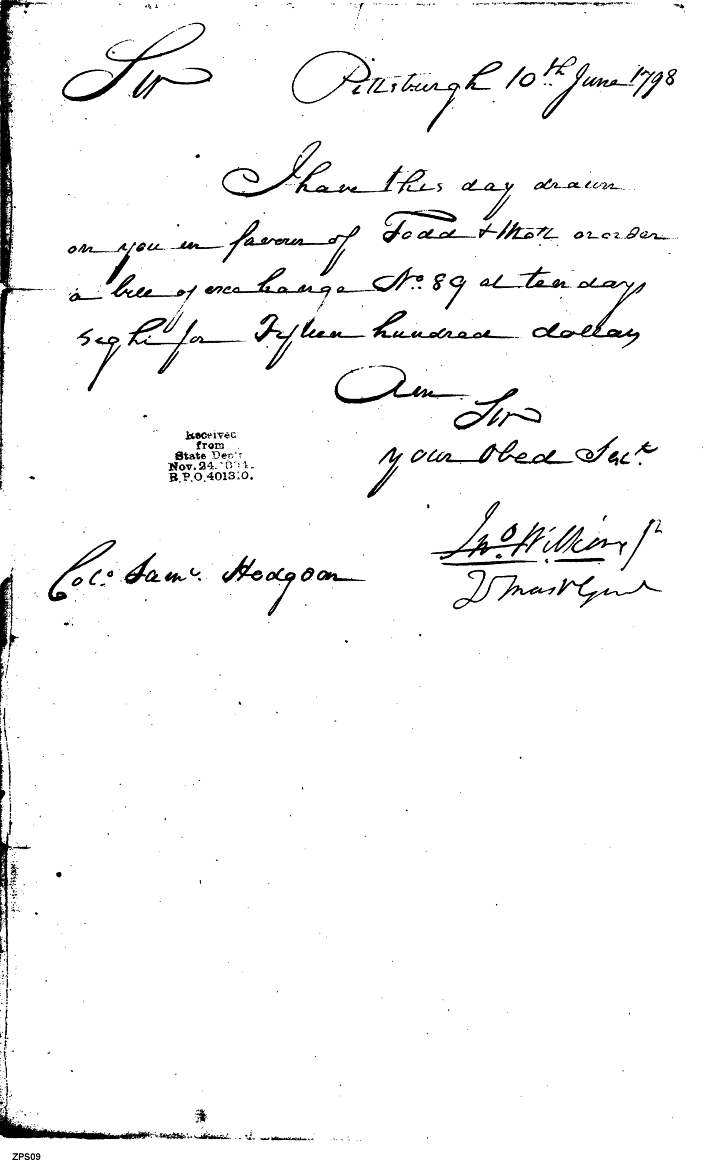 - Document: Bill of Exchange Drawn in Favor of Todd & Mott