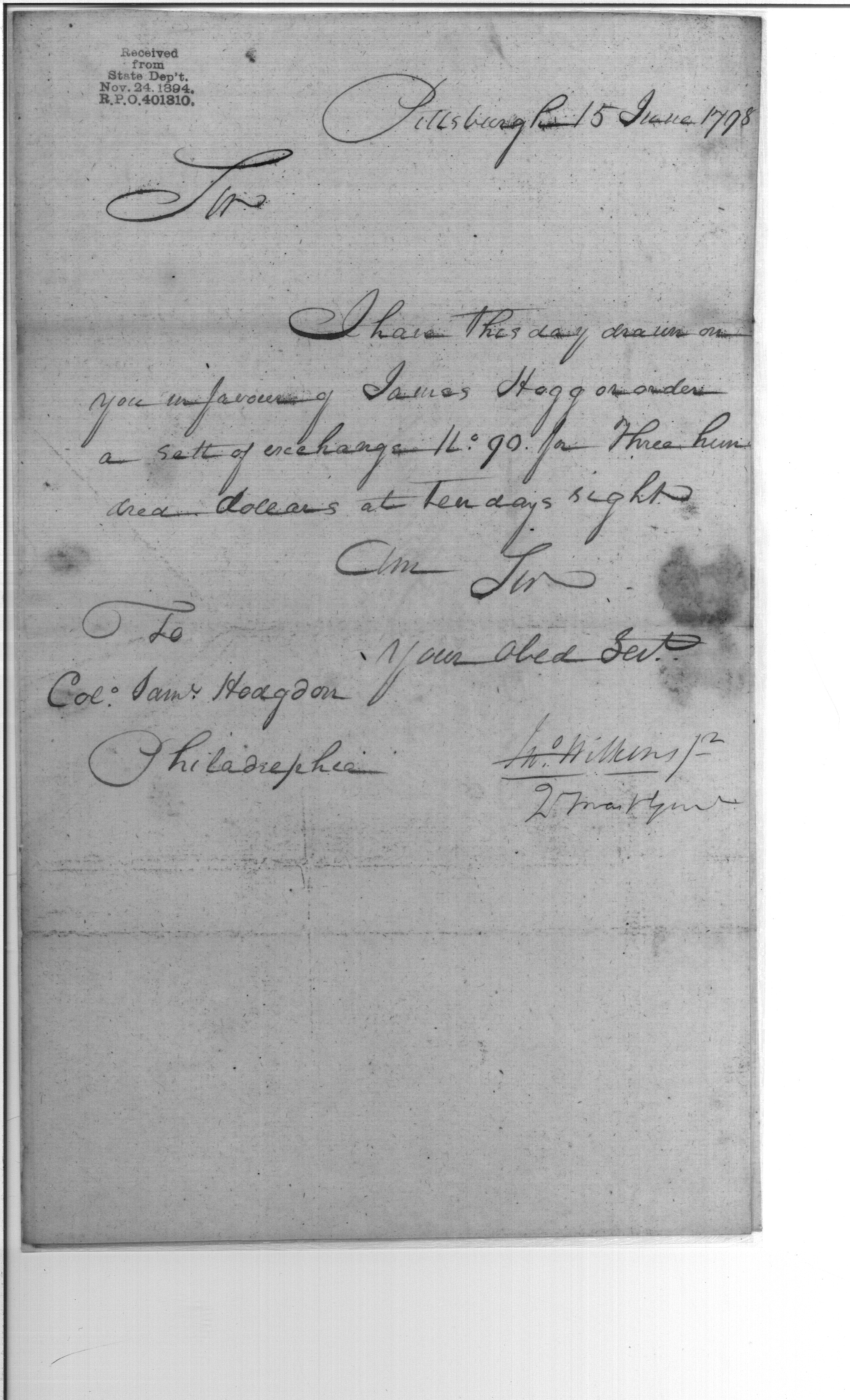 - Document: Settlement of Exchange in Favor of James Hogg