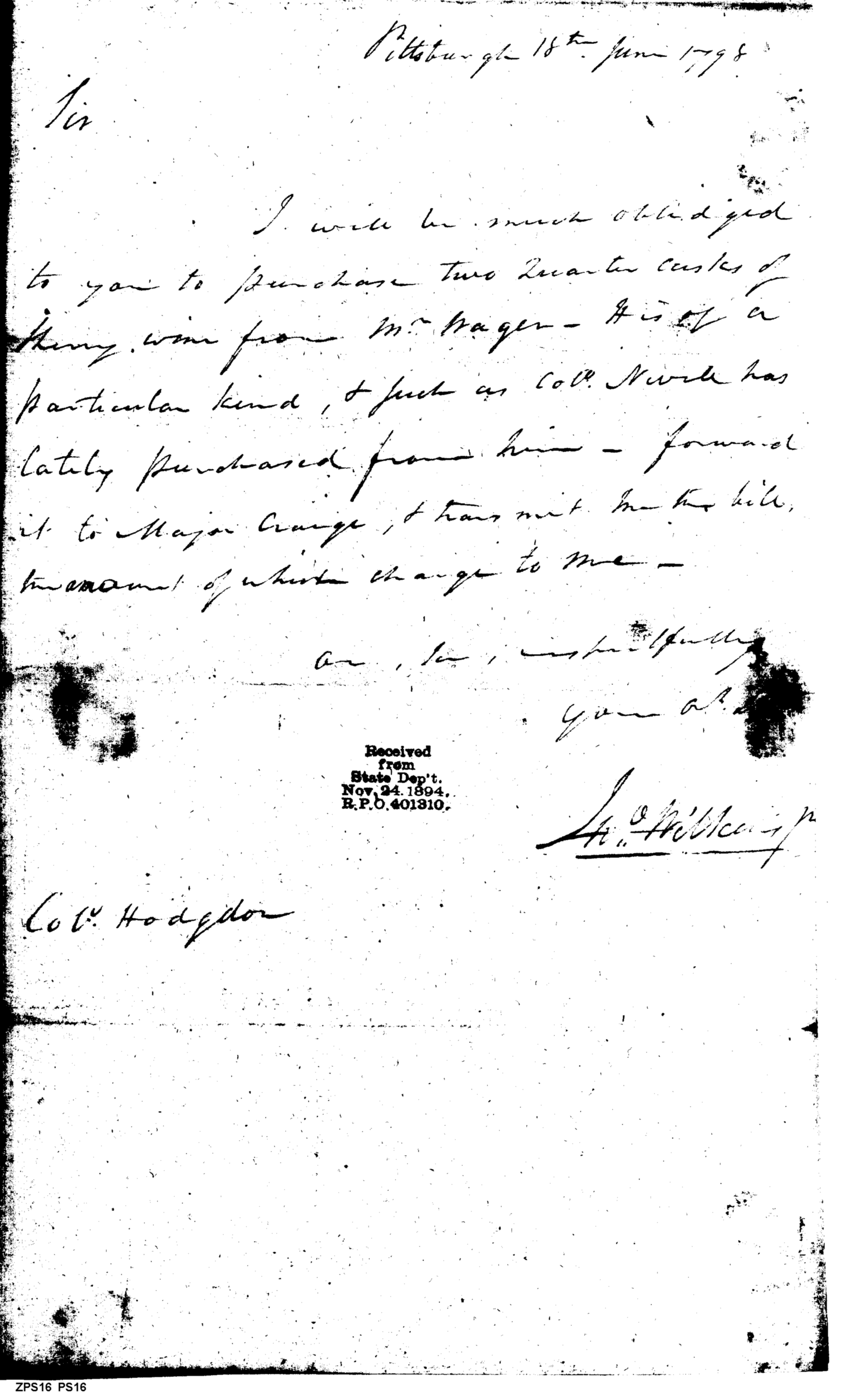 - In source: Collection: Post Revolutionary War Papers, 1784-1815. (RG94)