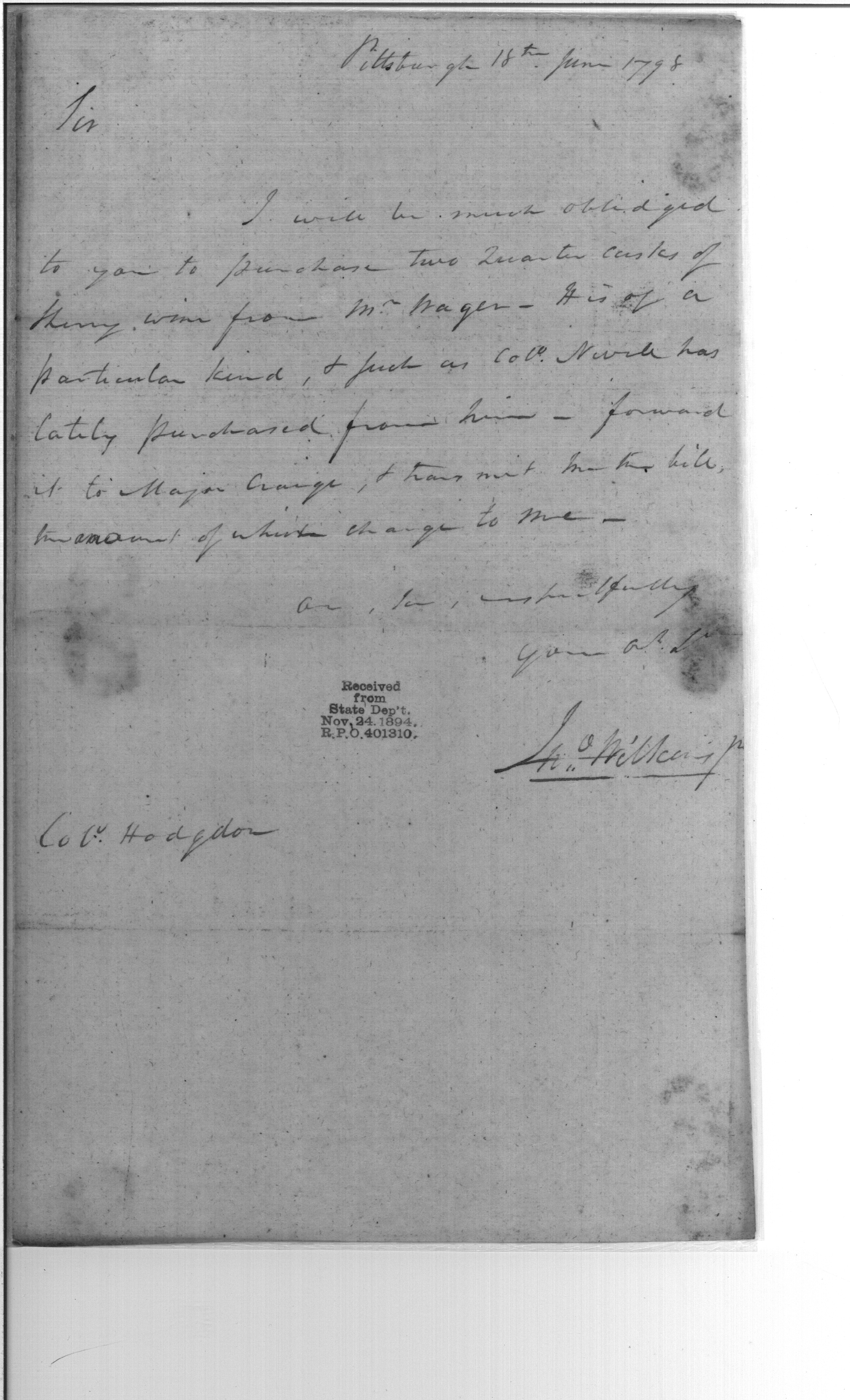 - In source: Collection: Post Revolutionary War Papers, 1784-1815. (RG94)