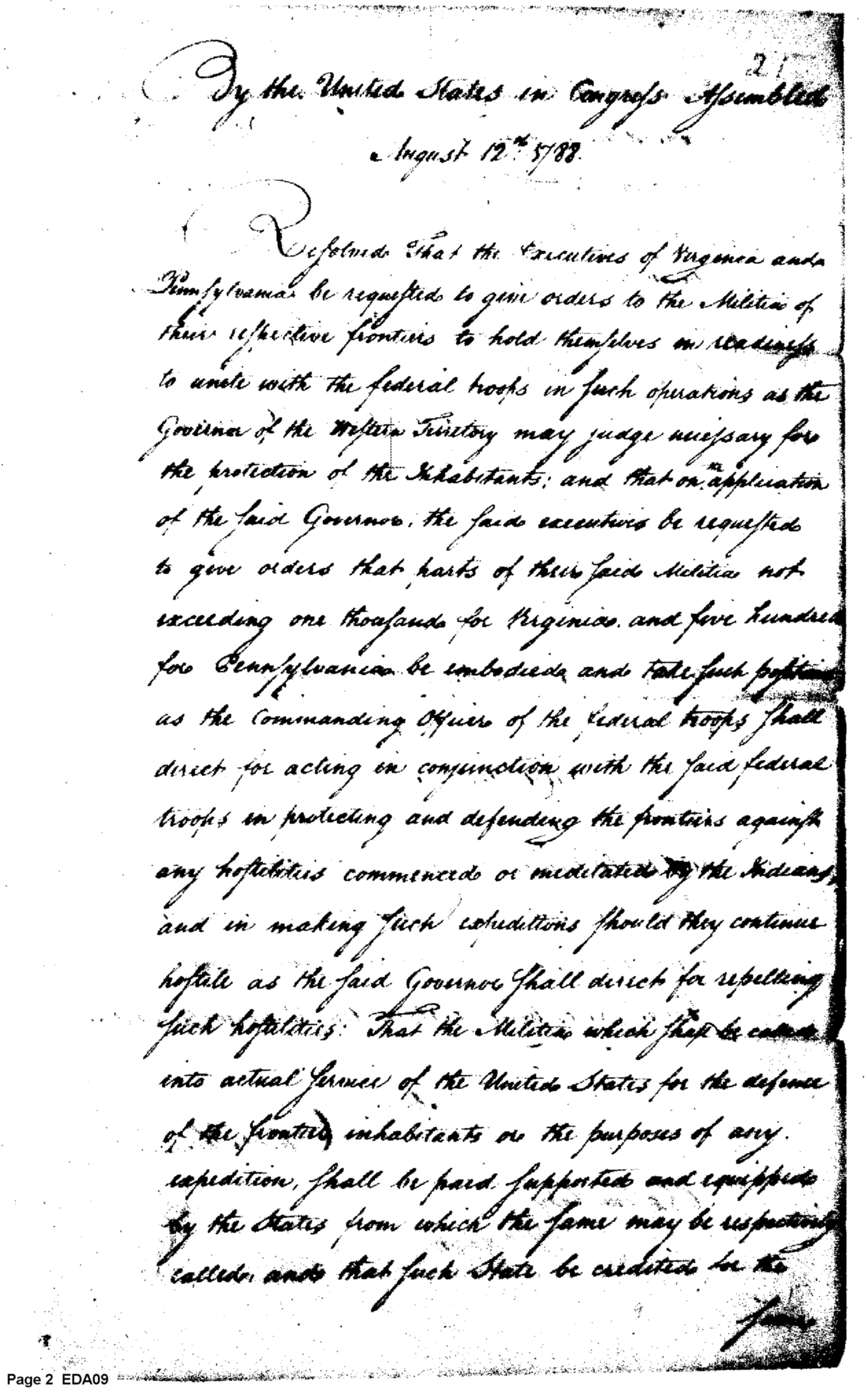 - Document: Military command authority established for governor of western territories by Congress