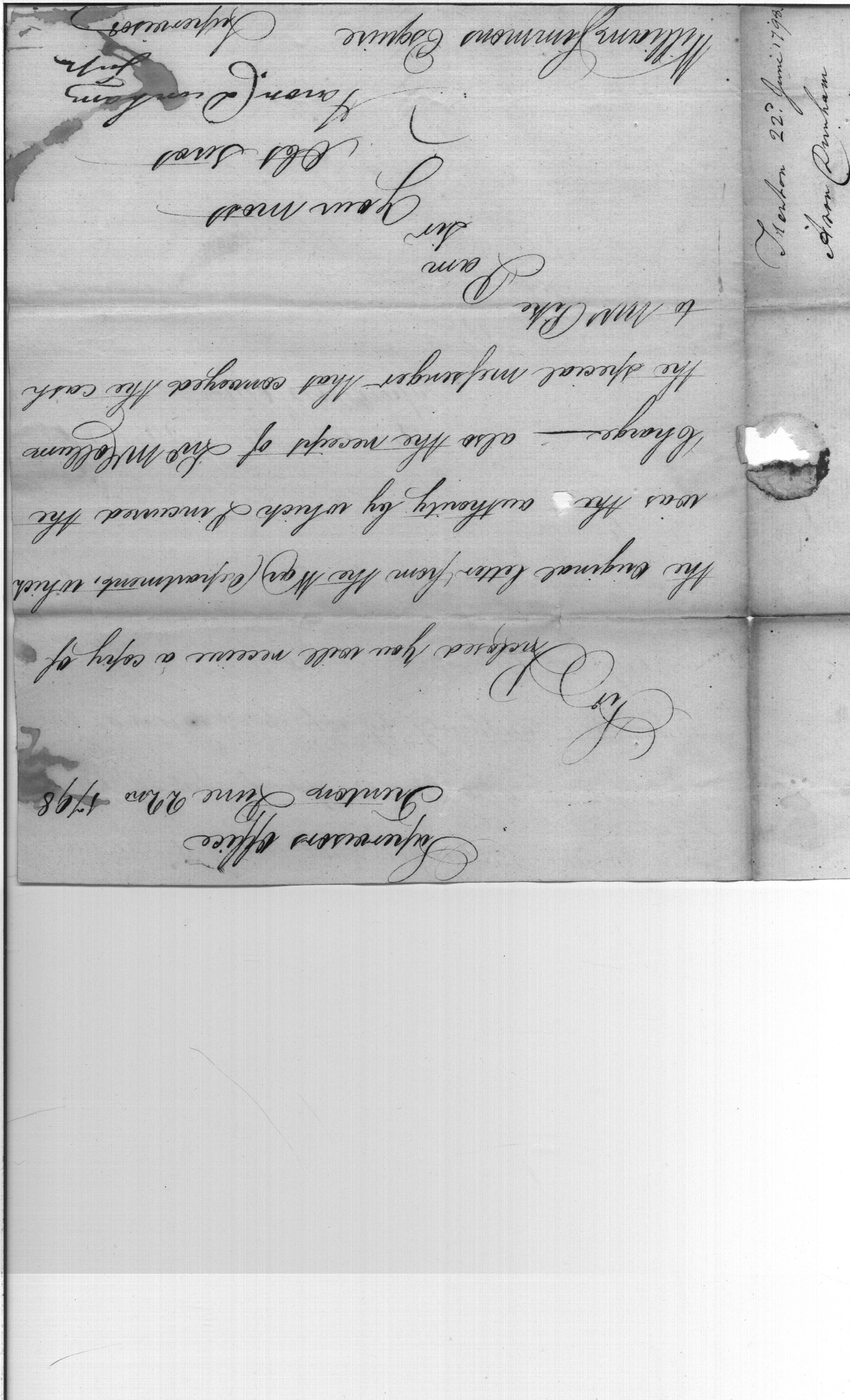 - Document: Aaron Dunham copy of letter to War Department and receipt of Mr McCollum special messenger