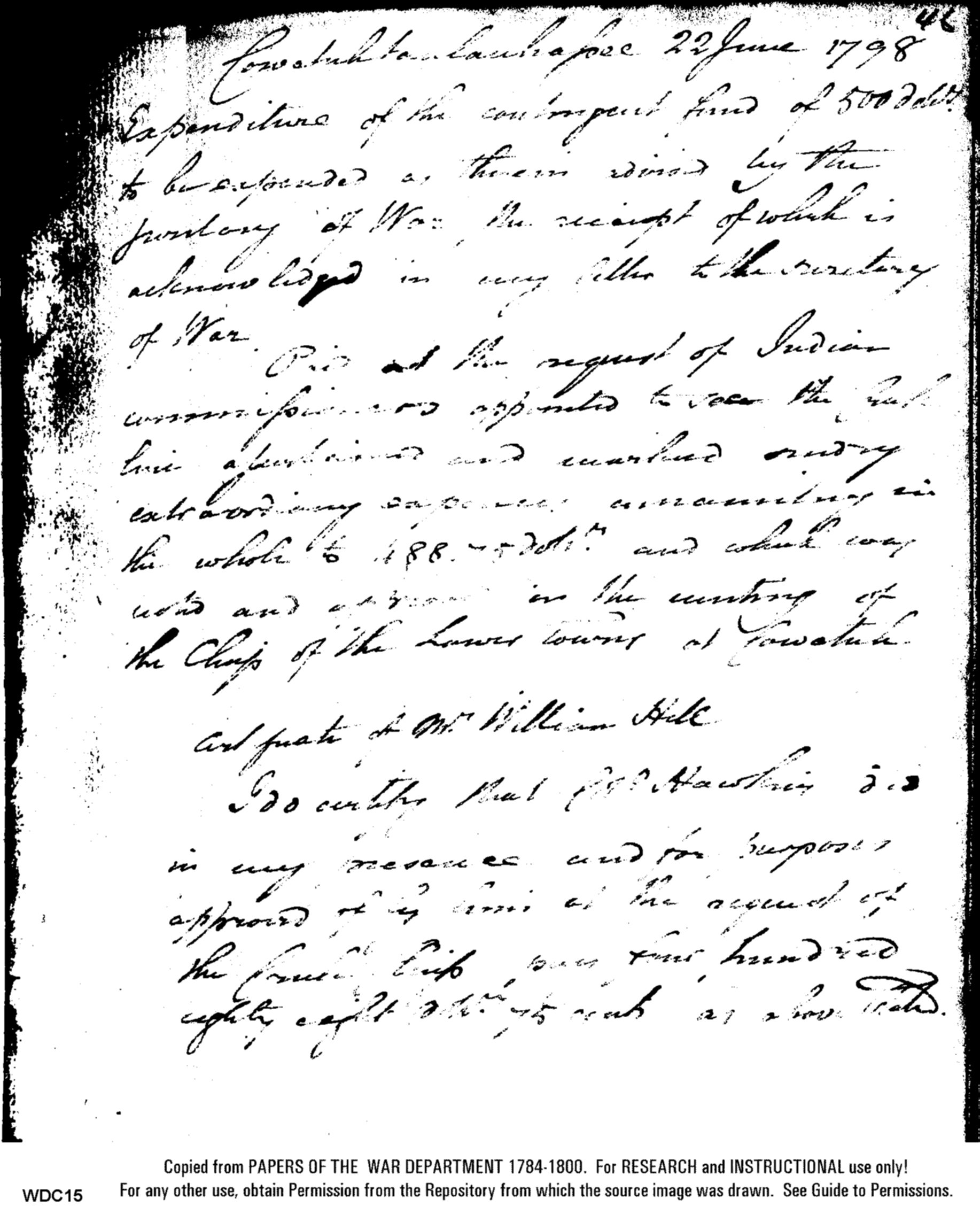 - Document: Certification of expenses related to Benjamin Hawkins, Superintendent Indian Affairs South of Ohio River