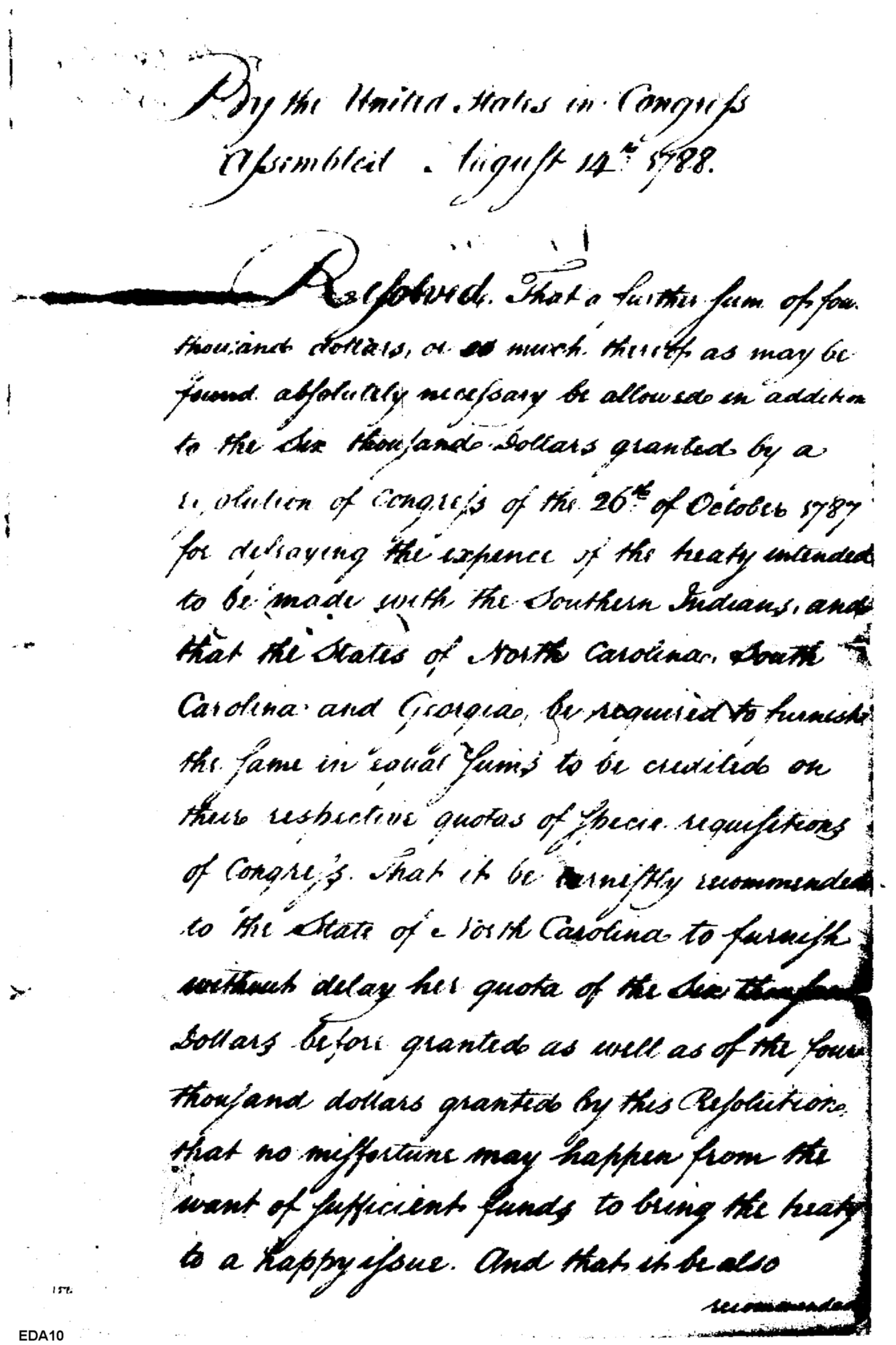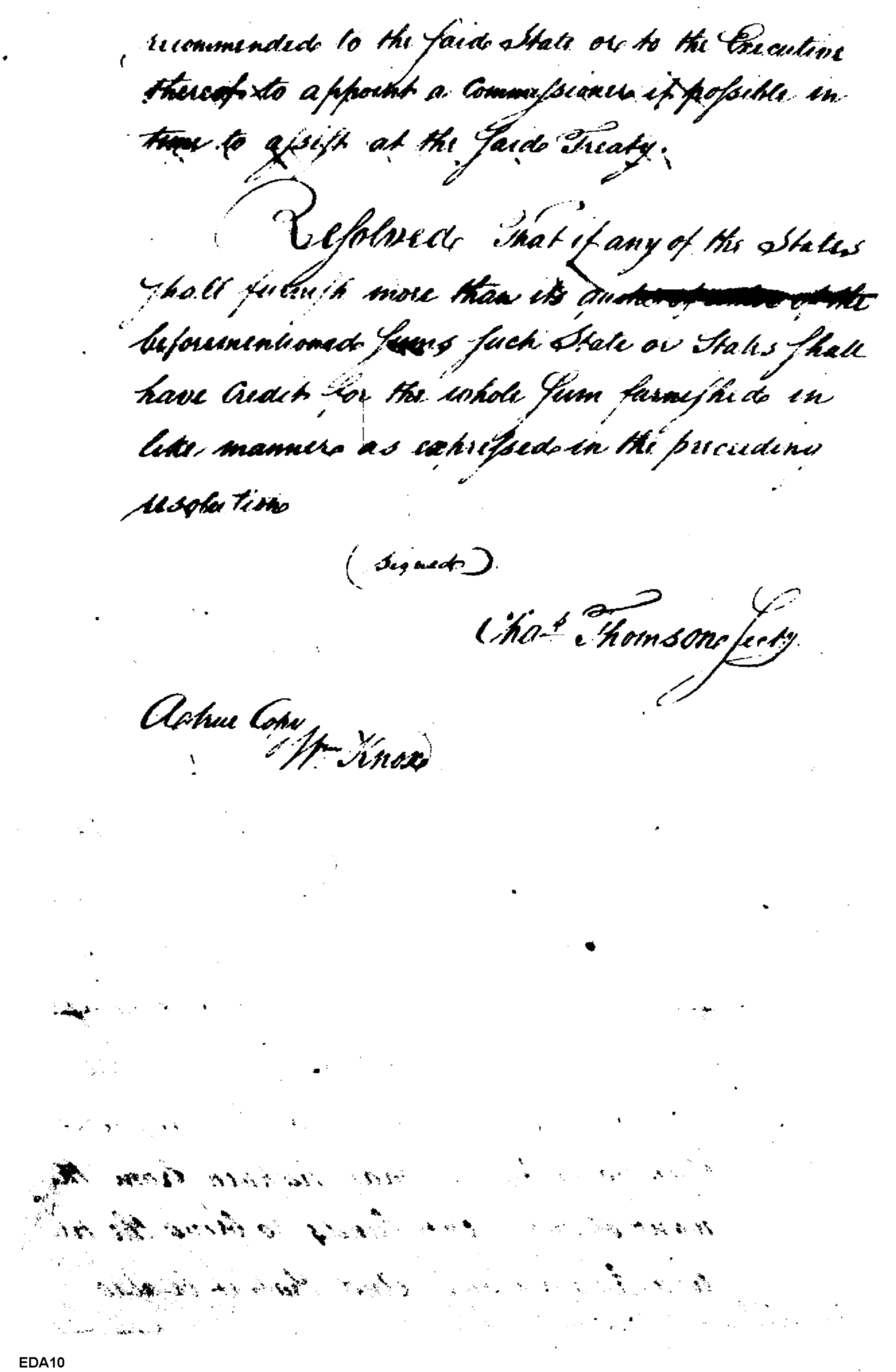 - Document: Thomson provides true copy of Congressional resolution to William Knox
