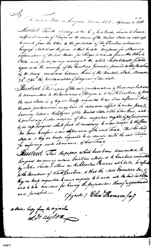 Document ViewerCongressional resolution regarding military protection of the Cherokee