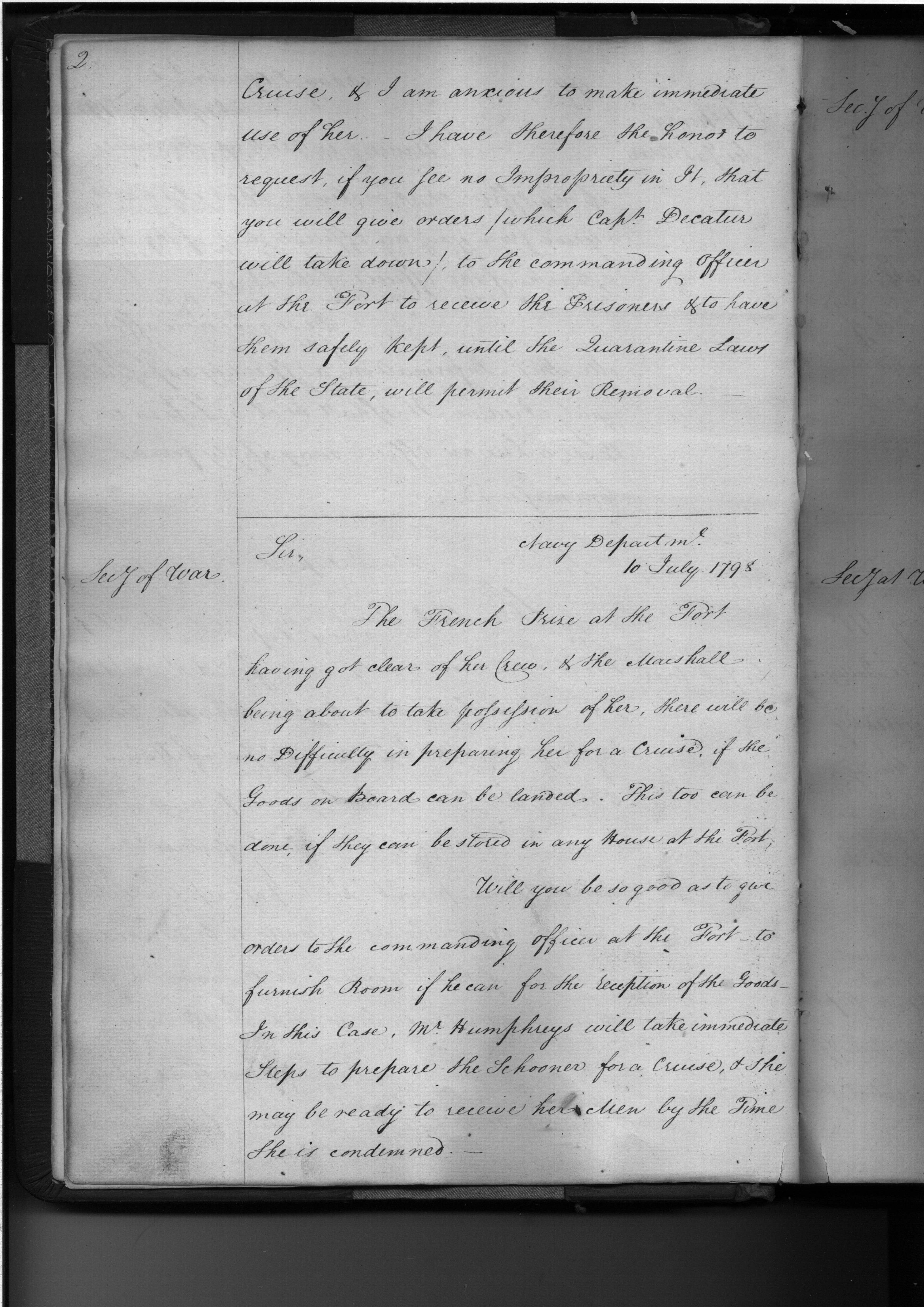 - In source: Collection: Letters Sent by the Secretary of the Navy to Federal Executive Agents (Letters to President, Secretary of State, Secretary of War, and Letters to (Requisitions on) Secretary of the Treasury and other Treasury Department Officials), June 1798-June 1824. (RG45)