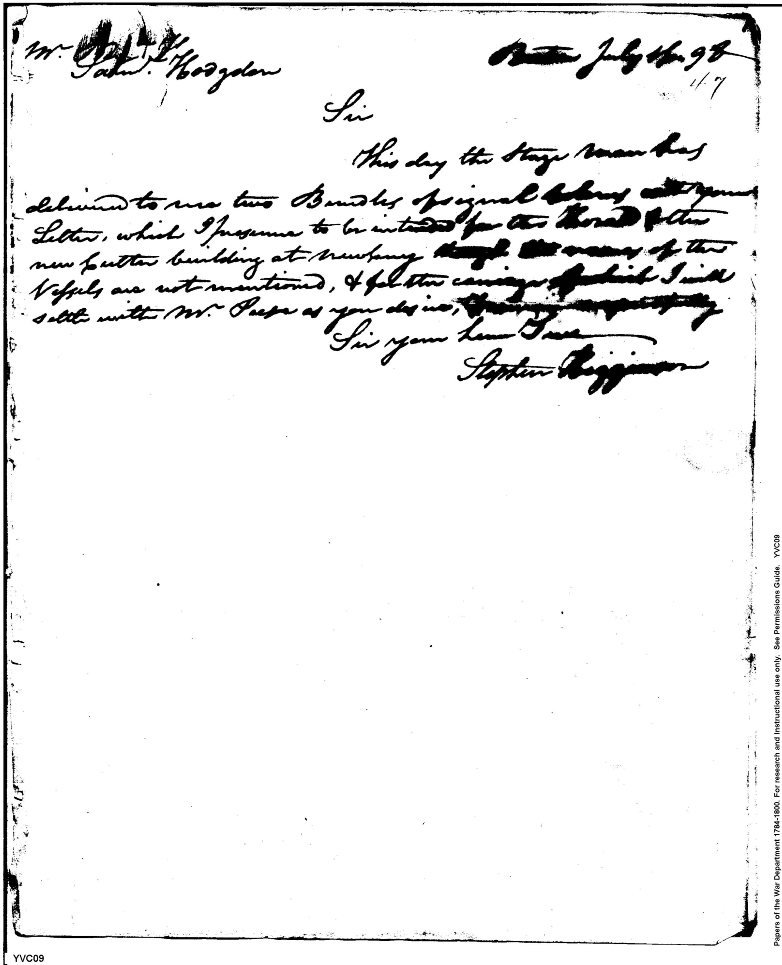 - Document: Letter to the Superintendent of Military Stores