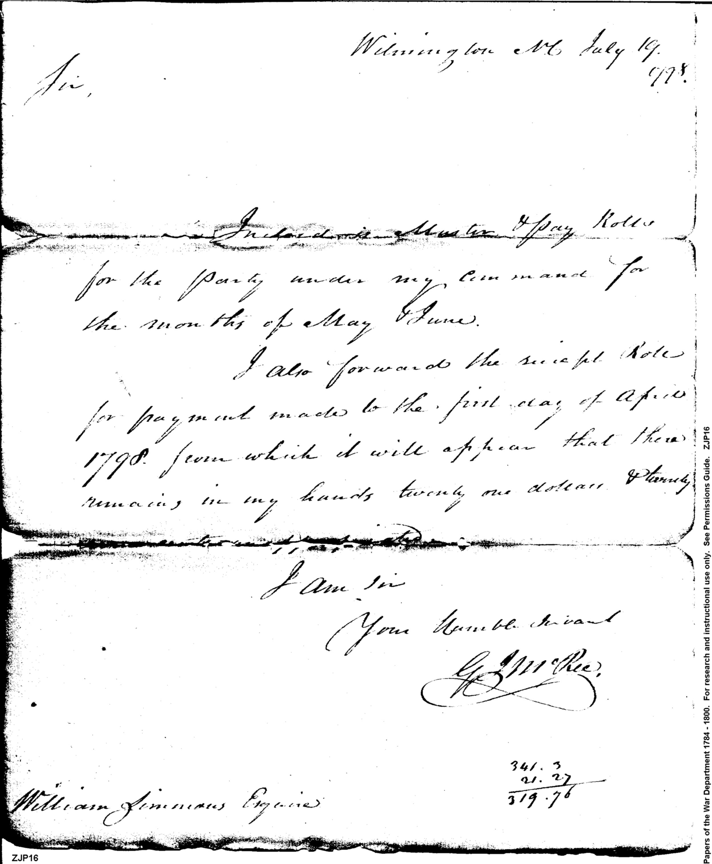 - In source: Collection: Post Revolutionary War Papers, 1784-1815. (RG94)