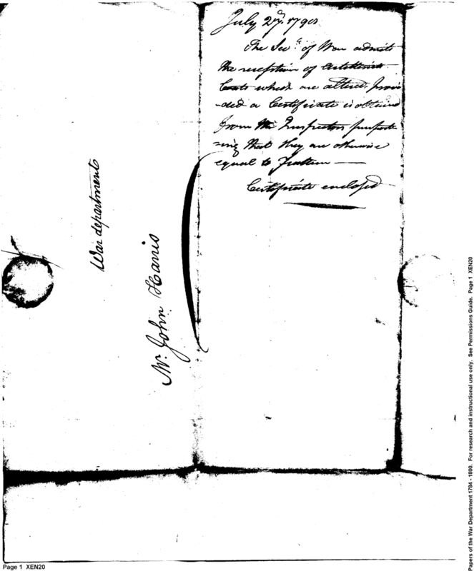 - In source: Collection: Correspondence, Reports, Returns, Bills, Accounts Current' Statements, Receipts, Vouchers and Contracts of Philadelphia Supply Agencies (Coxe and Irvine Papers), 1794-1842. (RG92)